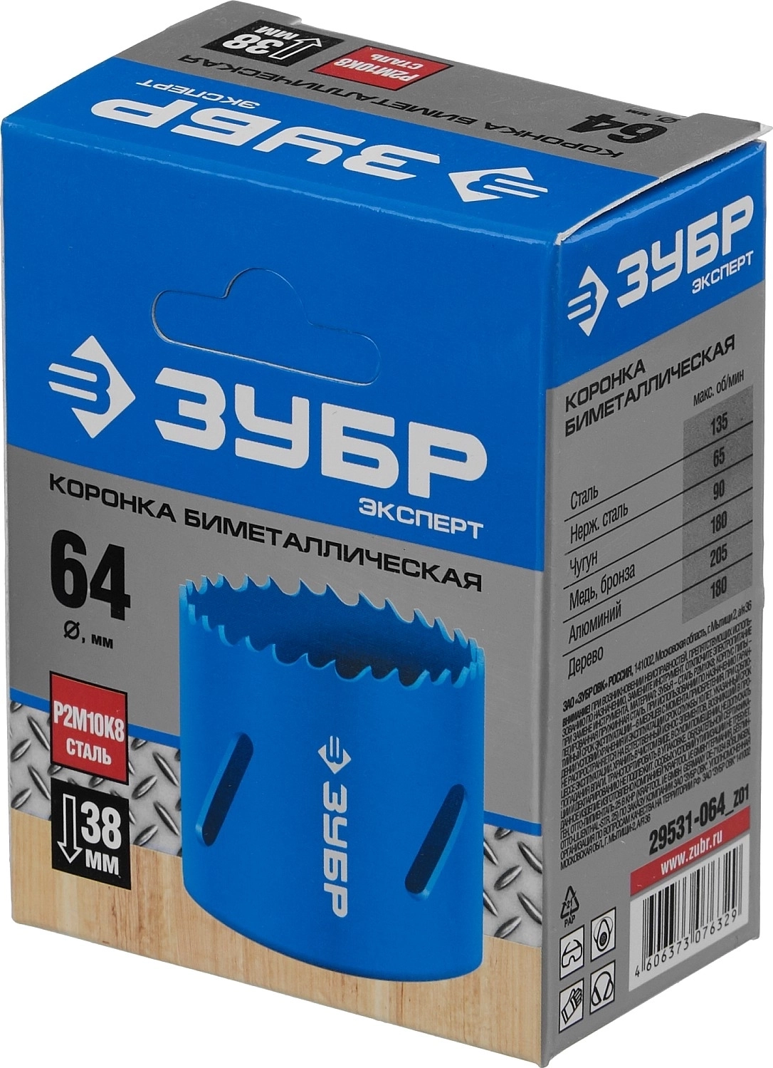 Биметаллическая коронка ЗУБР 64 мм, сталь Р6М5