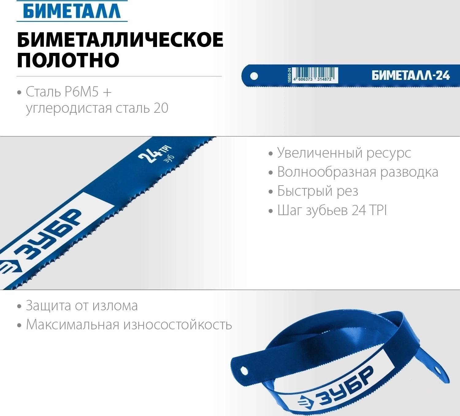 Биметаллическое полотно по металлу ЗУБР Биметалл-24 24 TPI