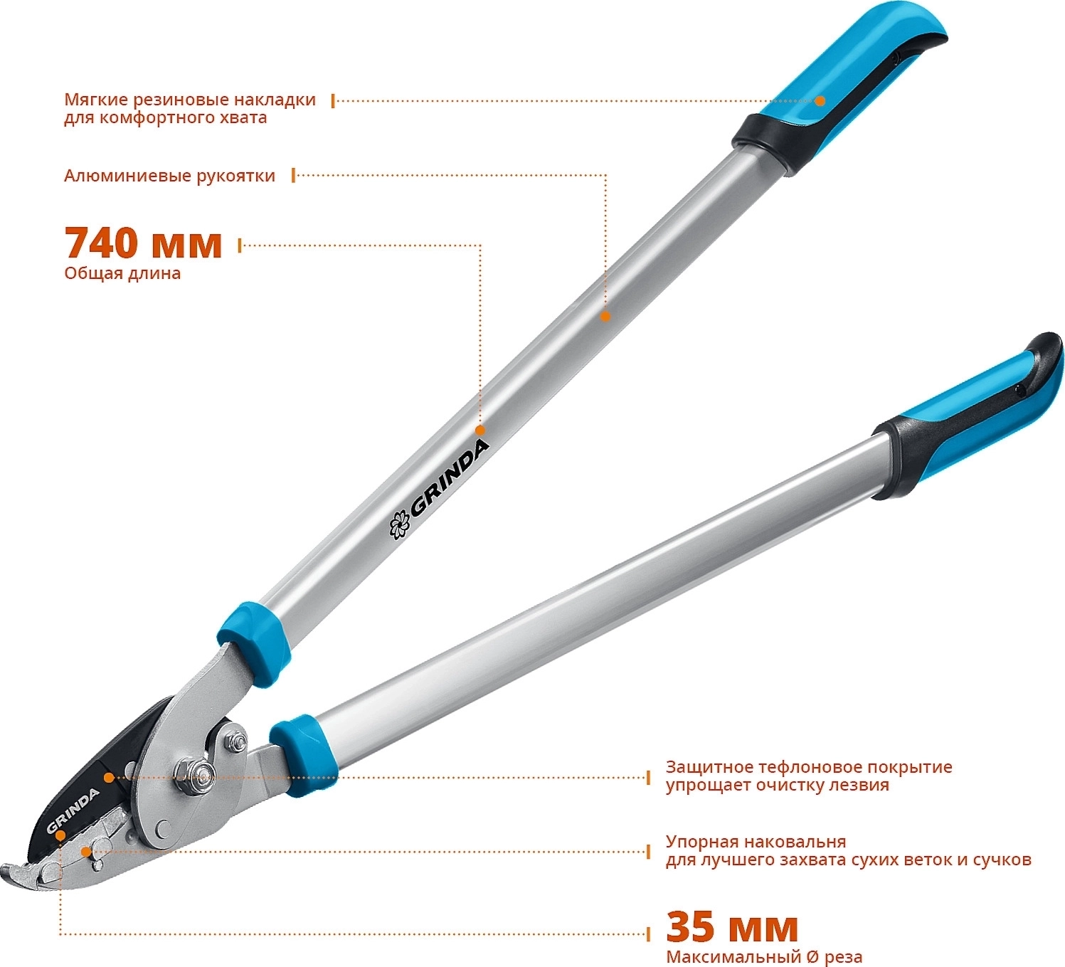 Большой контактный сучкорез PROLine GRINDA PL-740A длина 740 мм лезвия из высокоуглеродистой закаленной стали алюминиевые рукоятки