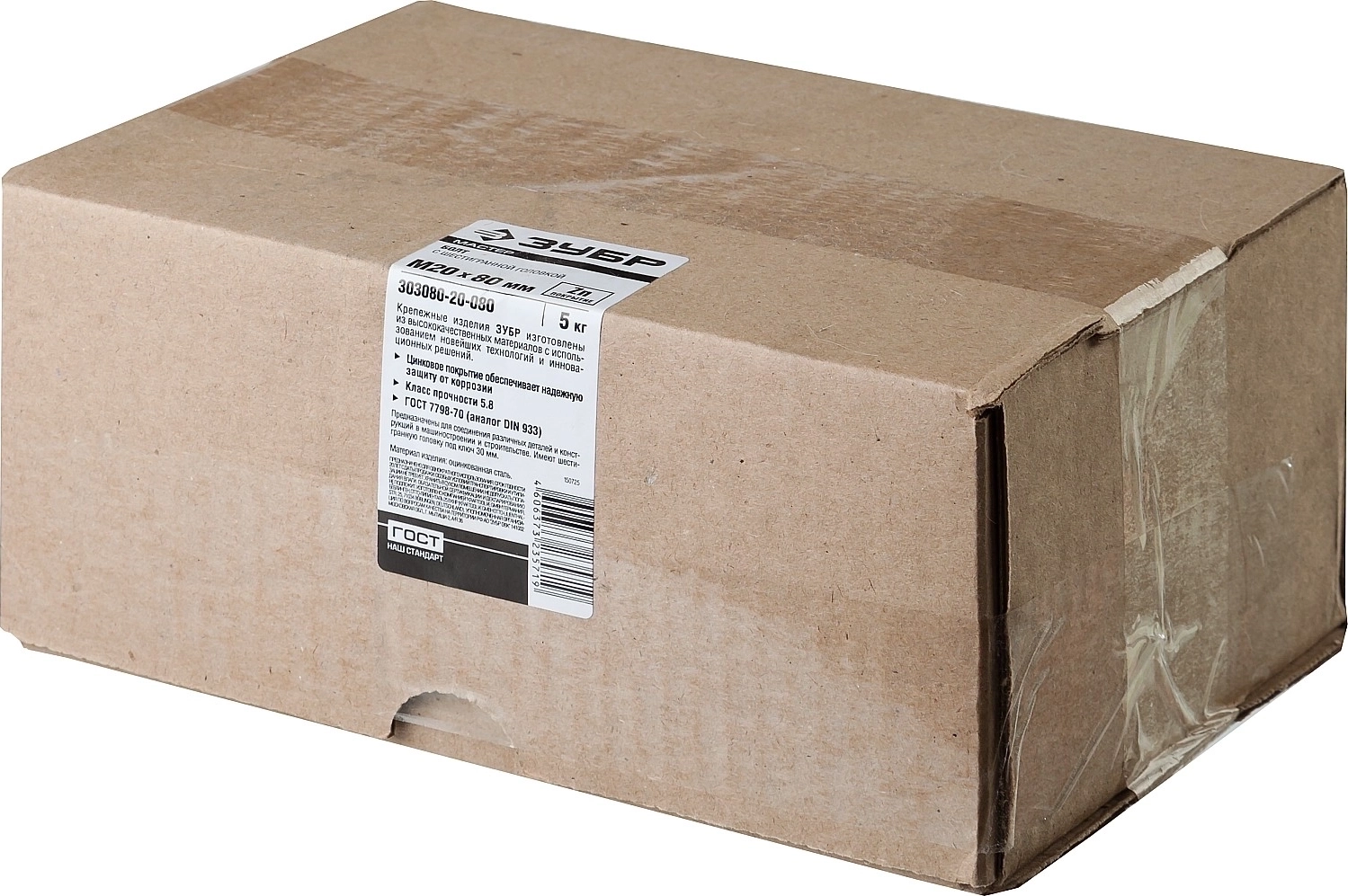 Болт ЗУБР ГОСТ 7798-70, кл. пр. 5.8, M20 х 80 мм, цинк, 5 кг