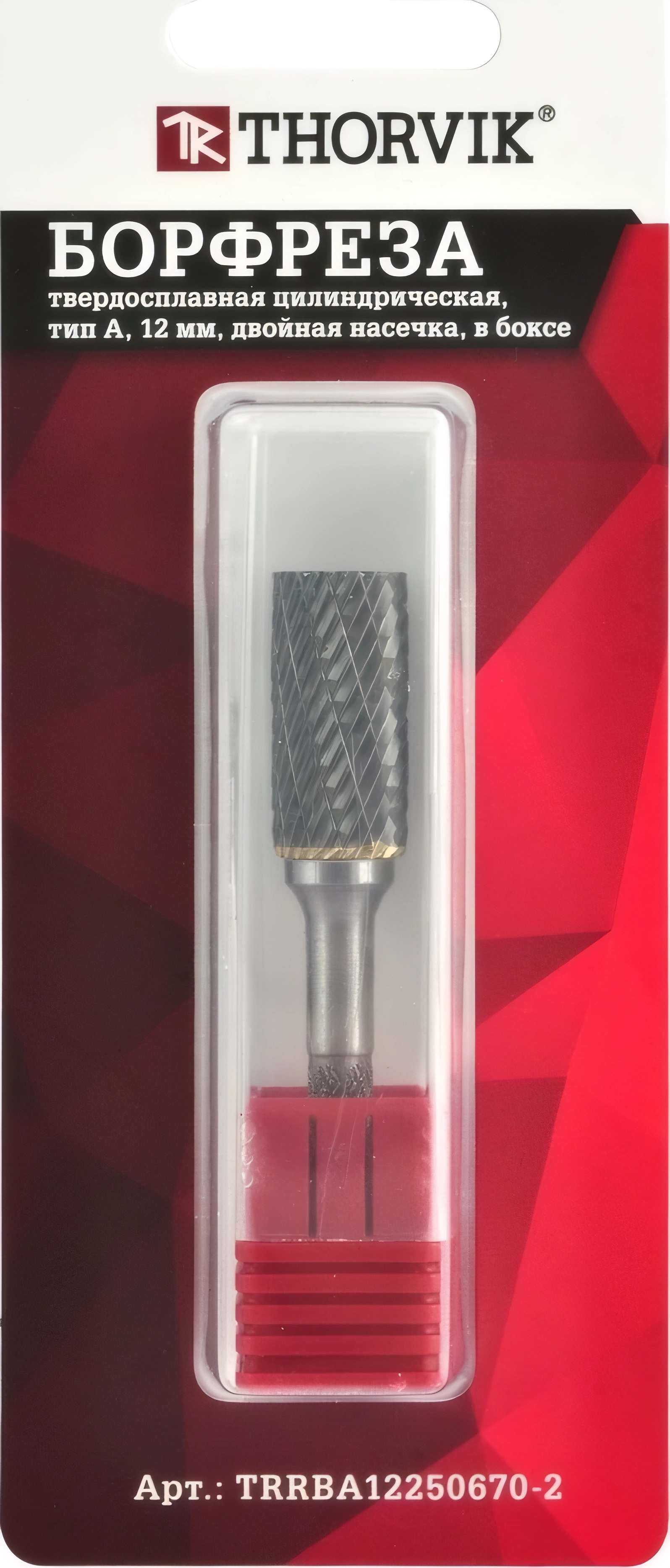 Борфреза твердосплавная цилиндрическая, тип А, 12 мм, двойная насечка, в боксе Thorvik TRRBA1225О670-2