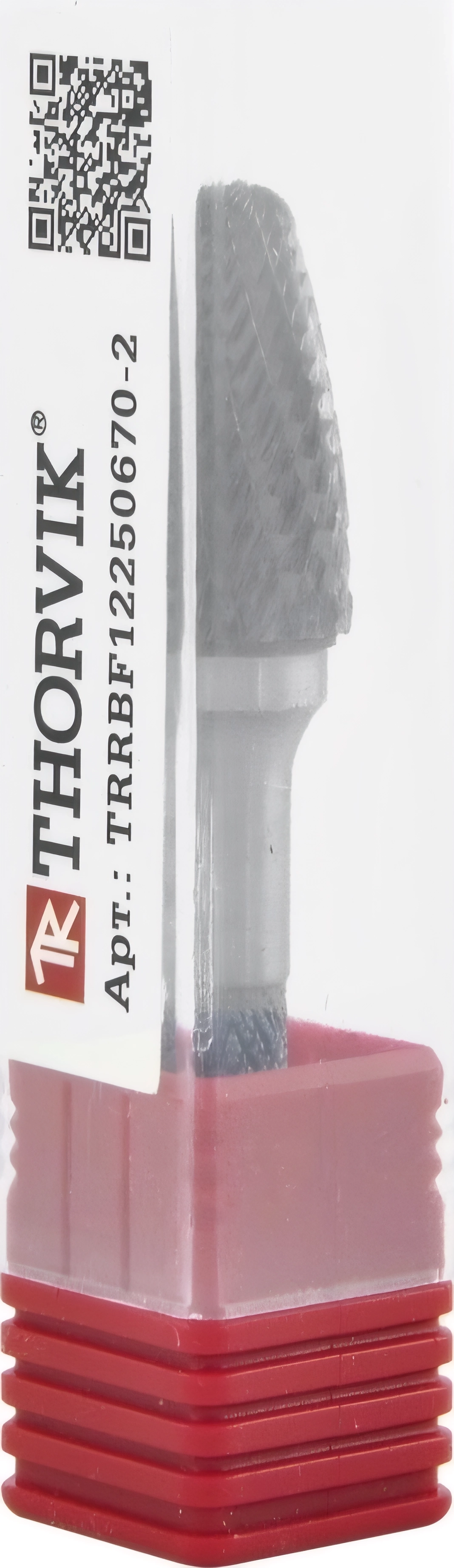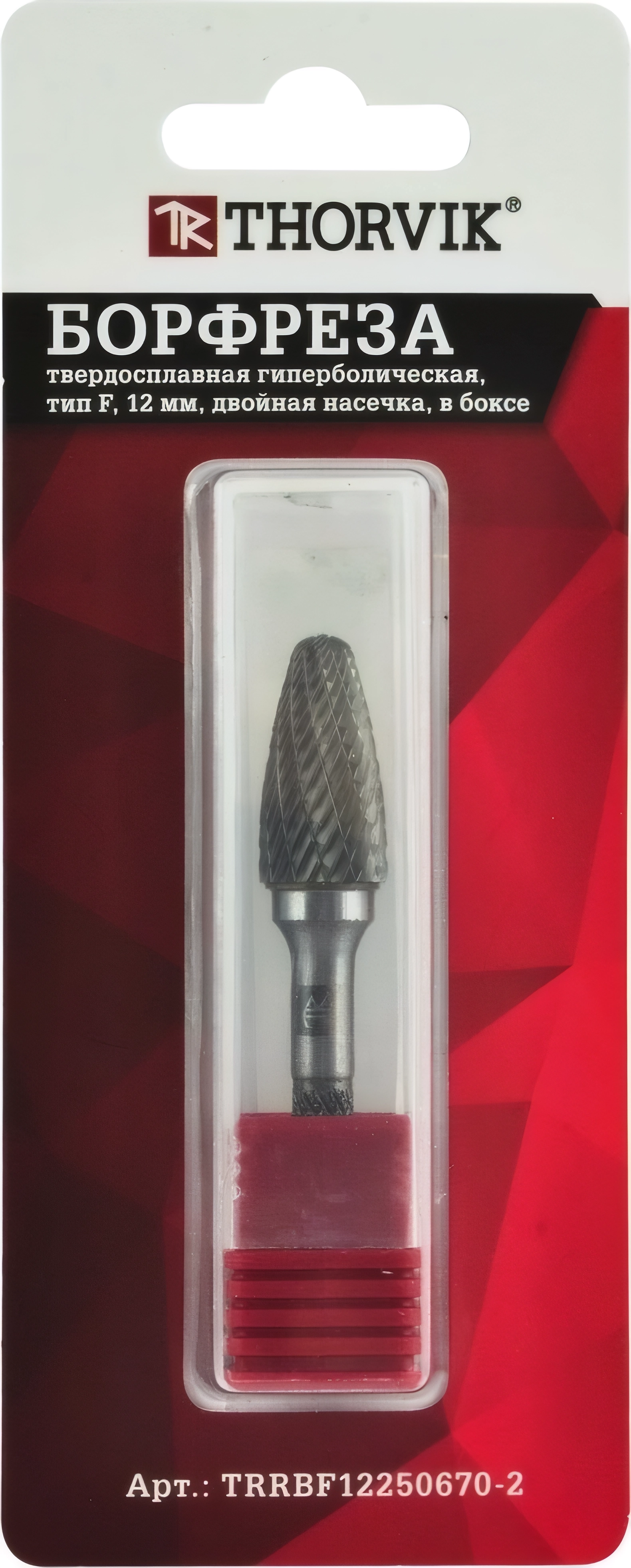 Борфреза твердосплавная гиперболическая, тип F, 12 мм, двойная насечка, в боксе Thorvik TRRBF12250670-2