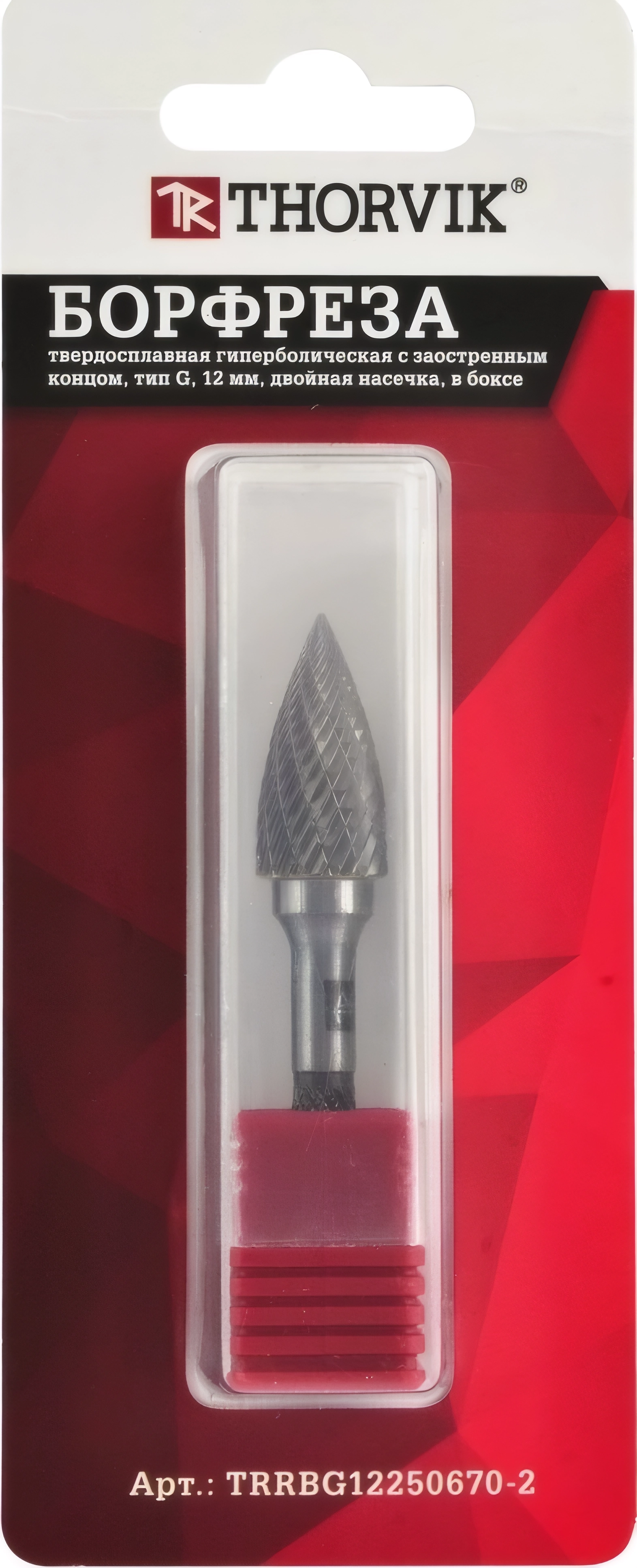 Борфреза твердосплавная гиперболическая с заостренным концом, тип G, 10 мм, двойная насечка, в боксе Thorvik TRRBG10200665-2
