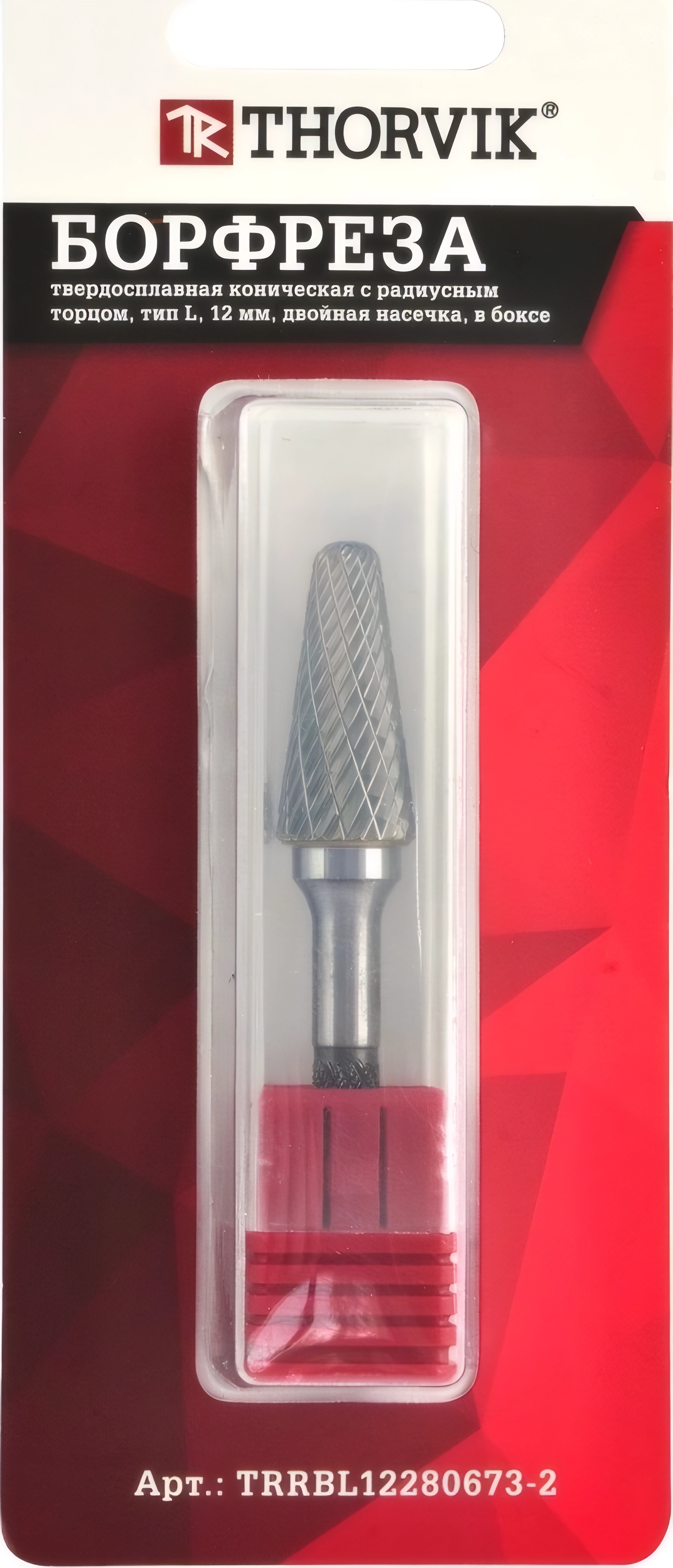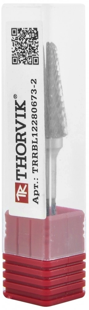 Борфреза твердосплавная коническая с радиусным торцом, тип L, 6 мм, двойная насечка, в боксе Thorvik TRRBL06160661-2
