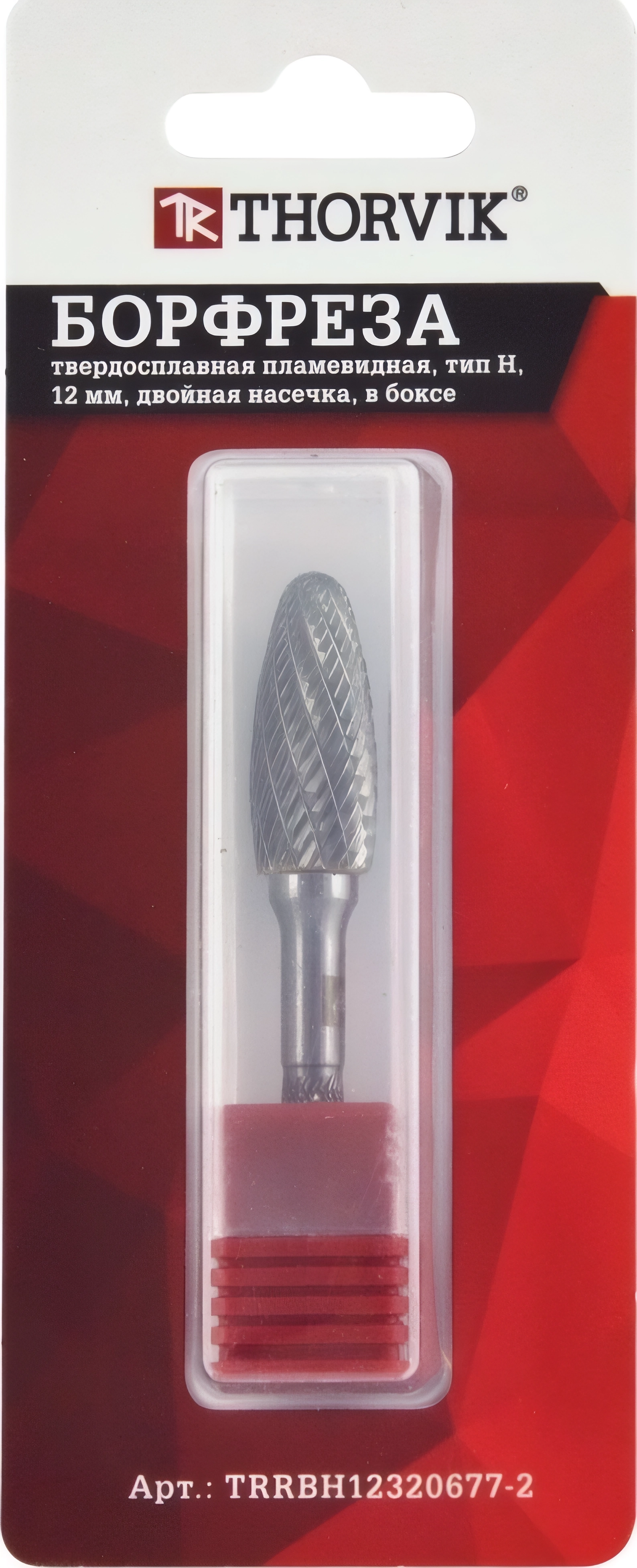 Борфреза твердосплавная пламевидная, тип H, 8 мм, двойная насечка, в боксе Thorvik TRRBH08200665-2