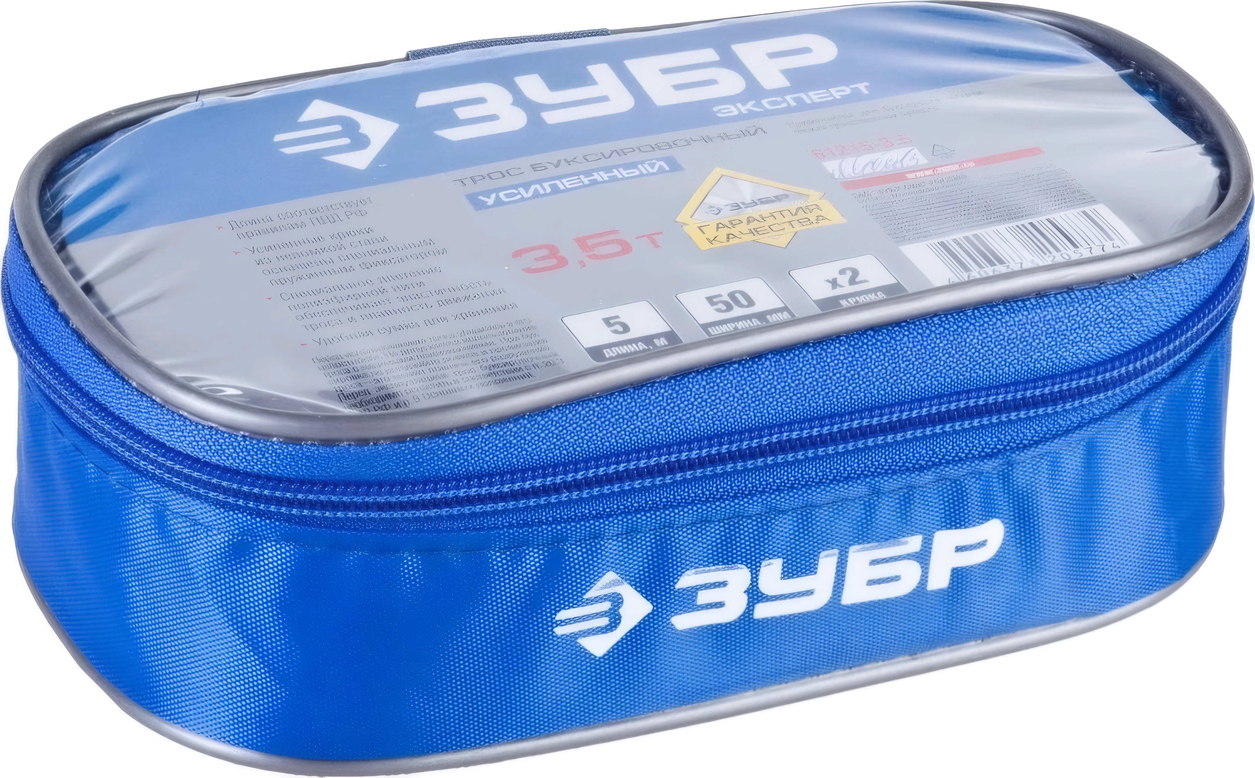 Буксировочный трос ЗУБР 2 крюка, 3.5 т, ширина ленты 50 мм, длина 5 м