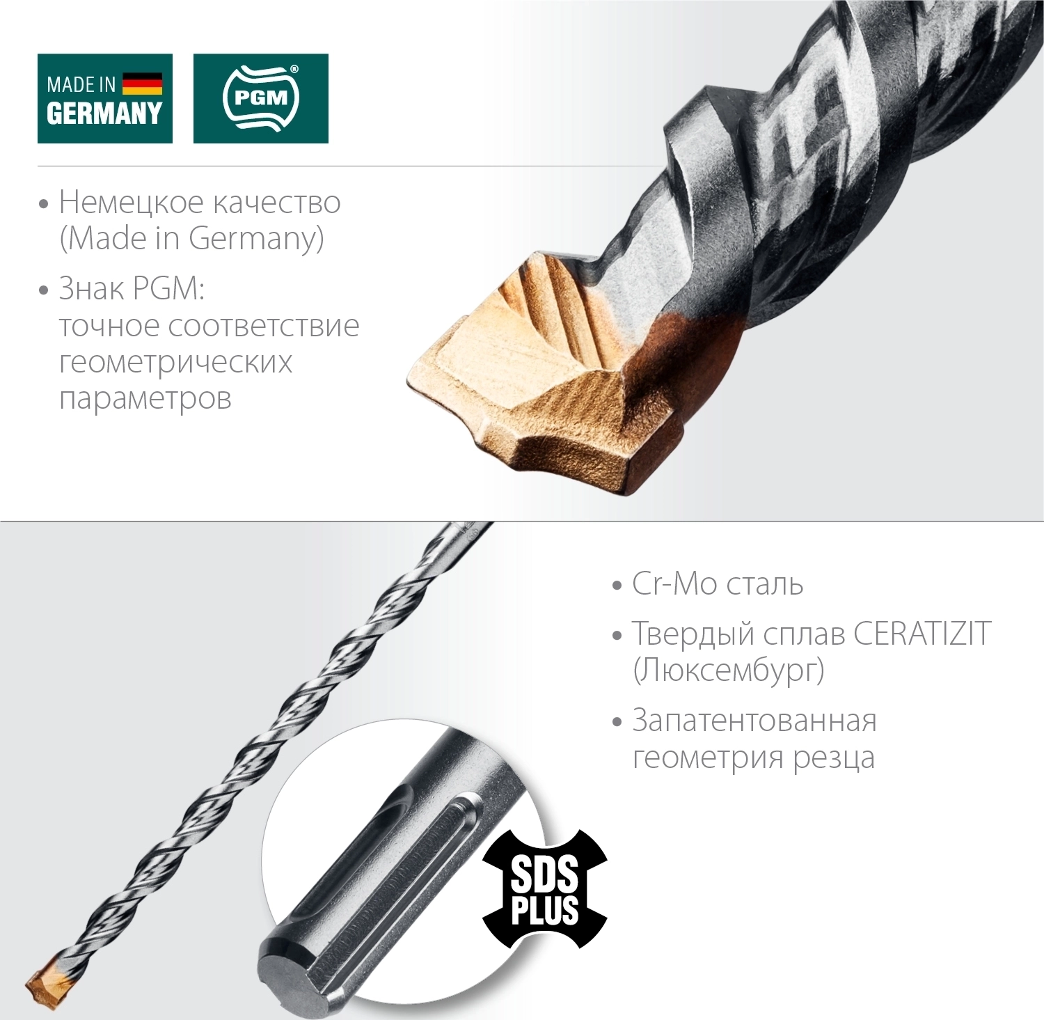 - Сертификат независимой Ассоциации производителей стенных сверл PGM гарантирует точное соответствие допускам по геометрическим параметрам инструмента.