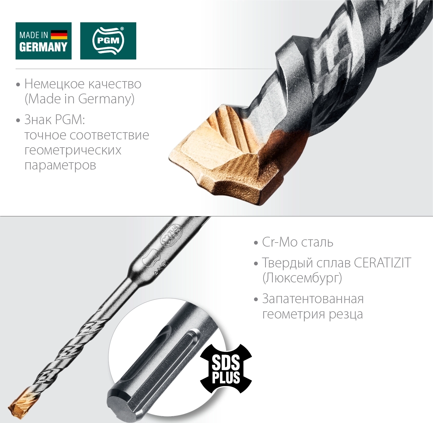 - Сертификат независимой Ассоциации производителей стенных сверл PGM гарантирует точное соответствие допускам по геометрическим параметрам инструмента.