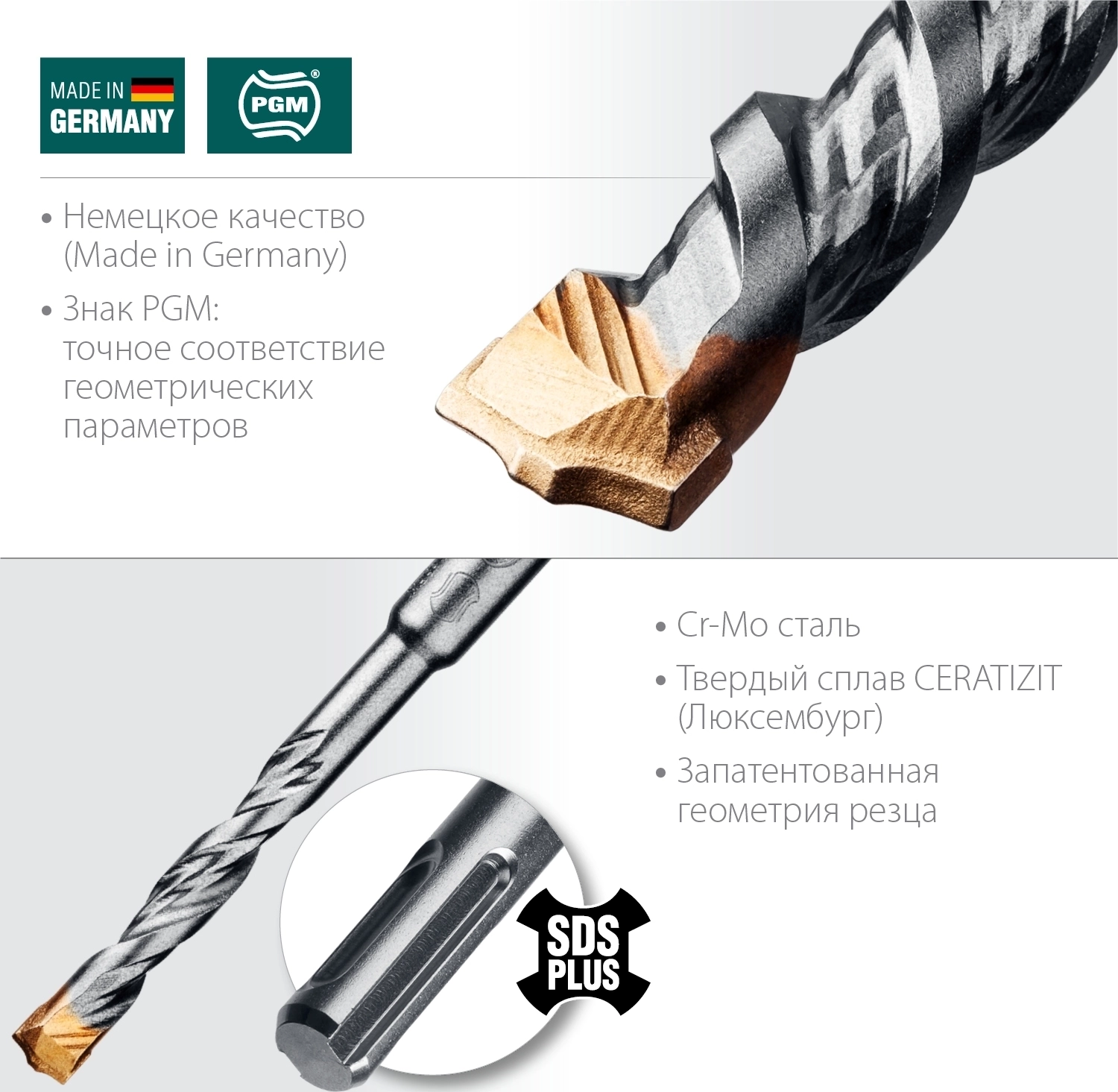 - Сертификат независимой Ассоциации производителей стенных сверл PGM гарантирует точное соответствие допускам по геометрическим параметрам инструмента.