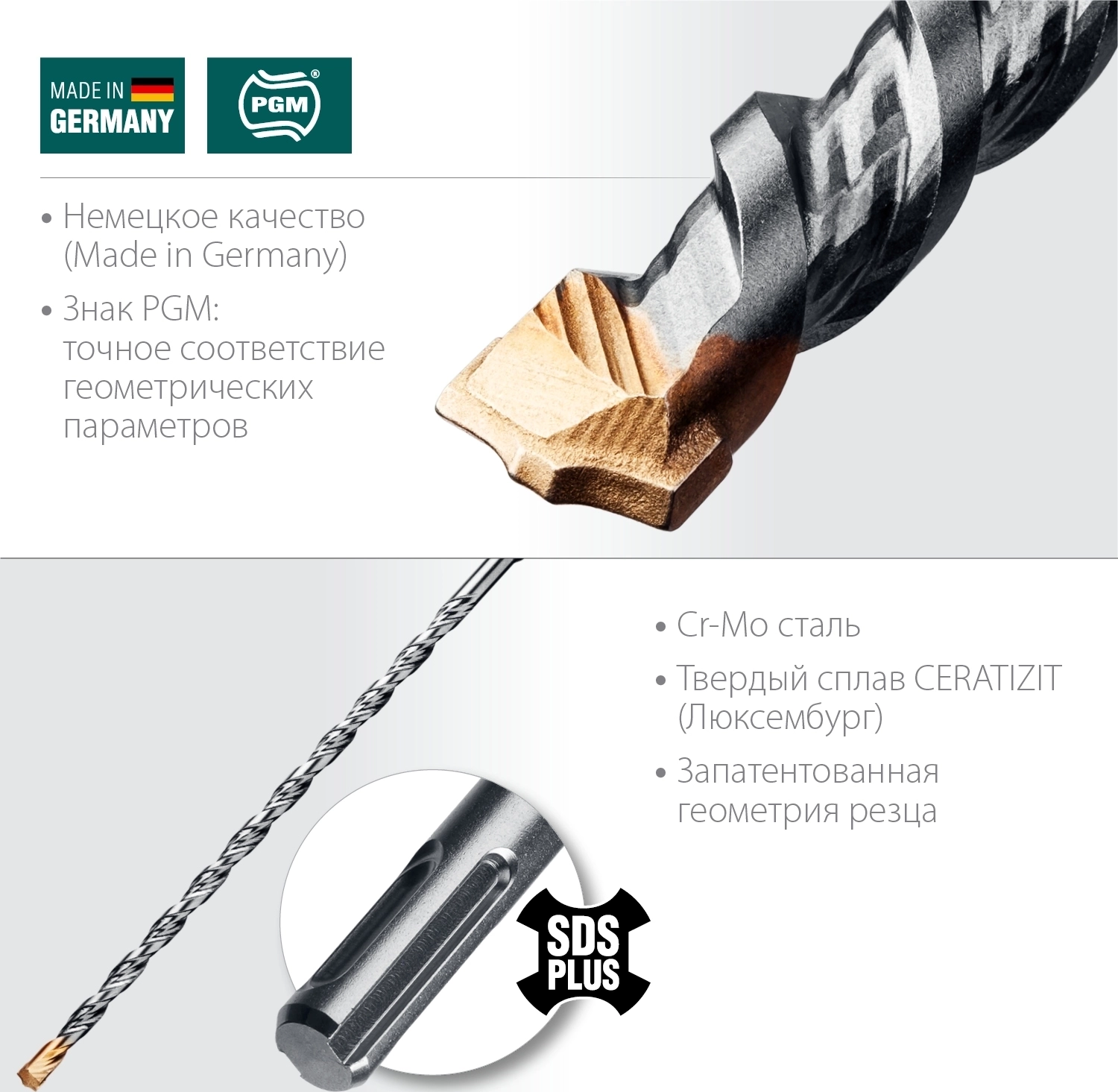 - Сертификат независимой Ассоциации производителей стенных сверл PGM гарантирует точное соответствие допускам по геометрическим параметрам инструмента.