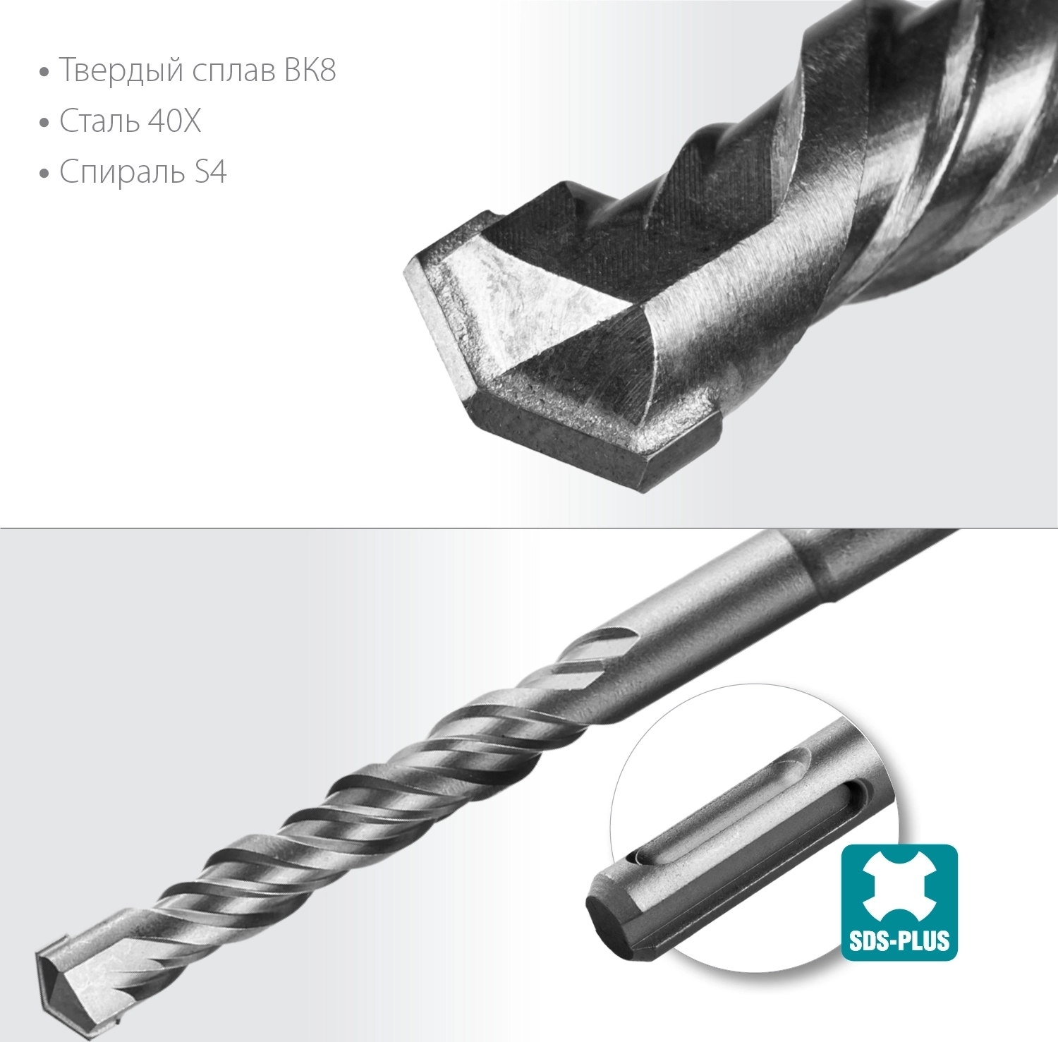 Для ударного сверления отверстий в бетоне, граните, кирпичной кладке, камне и твердых известняках. Используется на легких и средних перфораторах с зажимом SDS-plus.