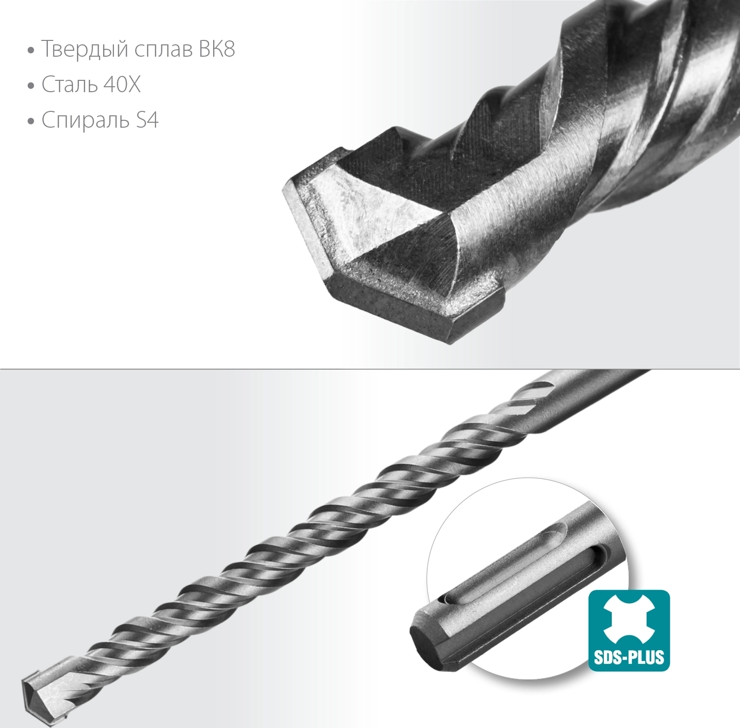 Для ударного сверления отверстий в бетоне, граните, кирпичной кладке, камне и твердых известняках. Используется на легких и средних перфораторах с зажимом SDS-plus.