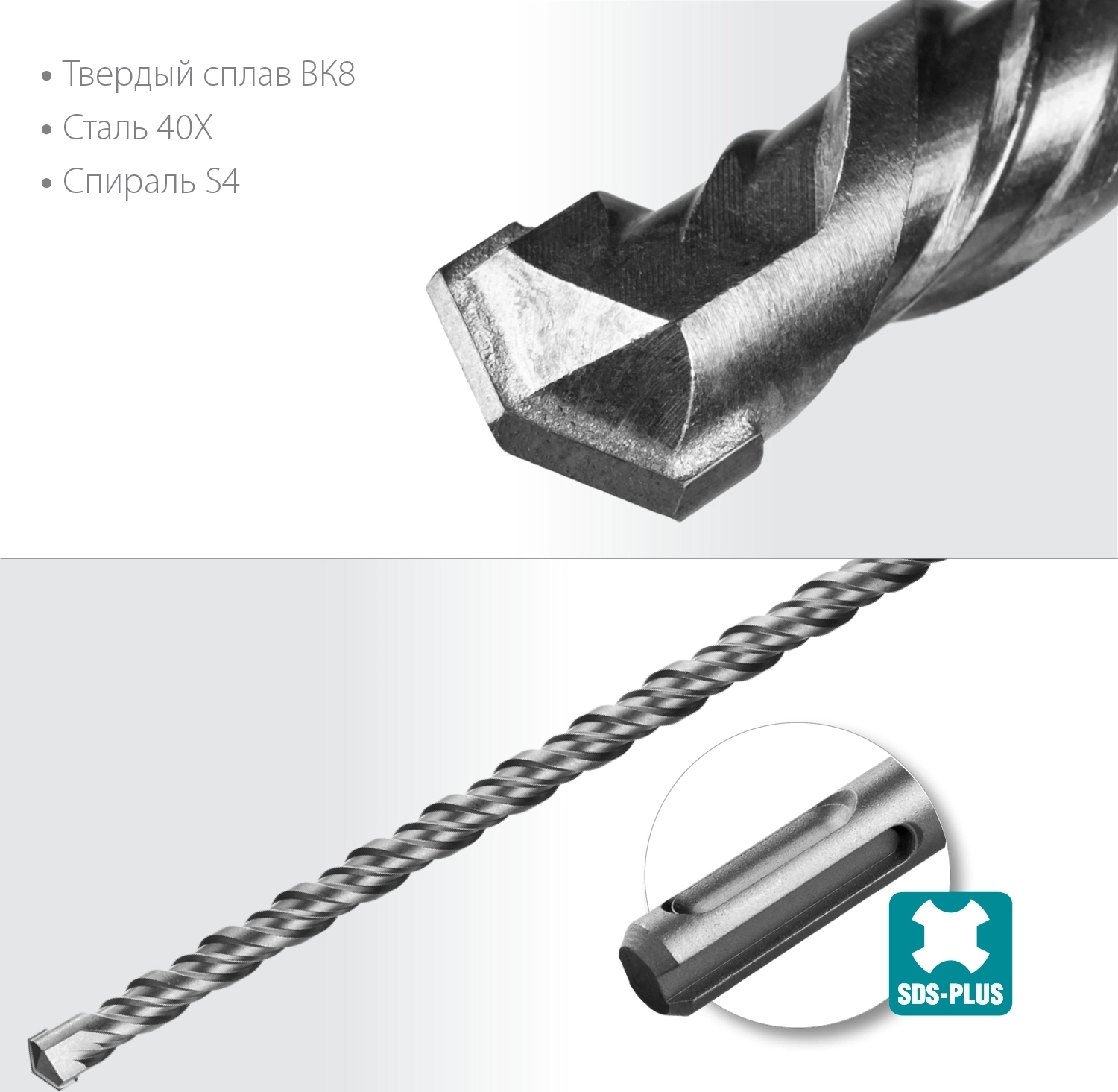 Для ударного сверления отверстий в бетоне, граните, кирпичной кладке, камне и твердых известняках. Используется на легких и средних перфораторах с зажимом SDS-plus.