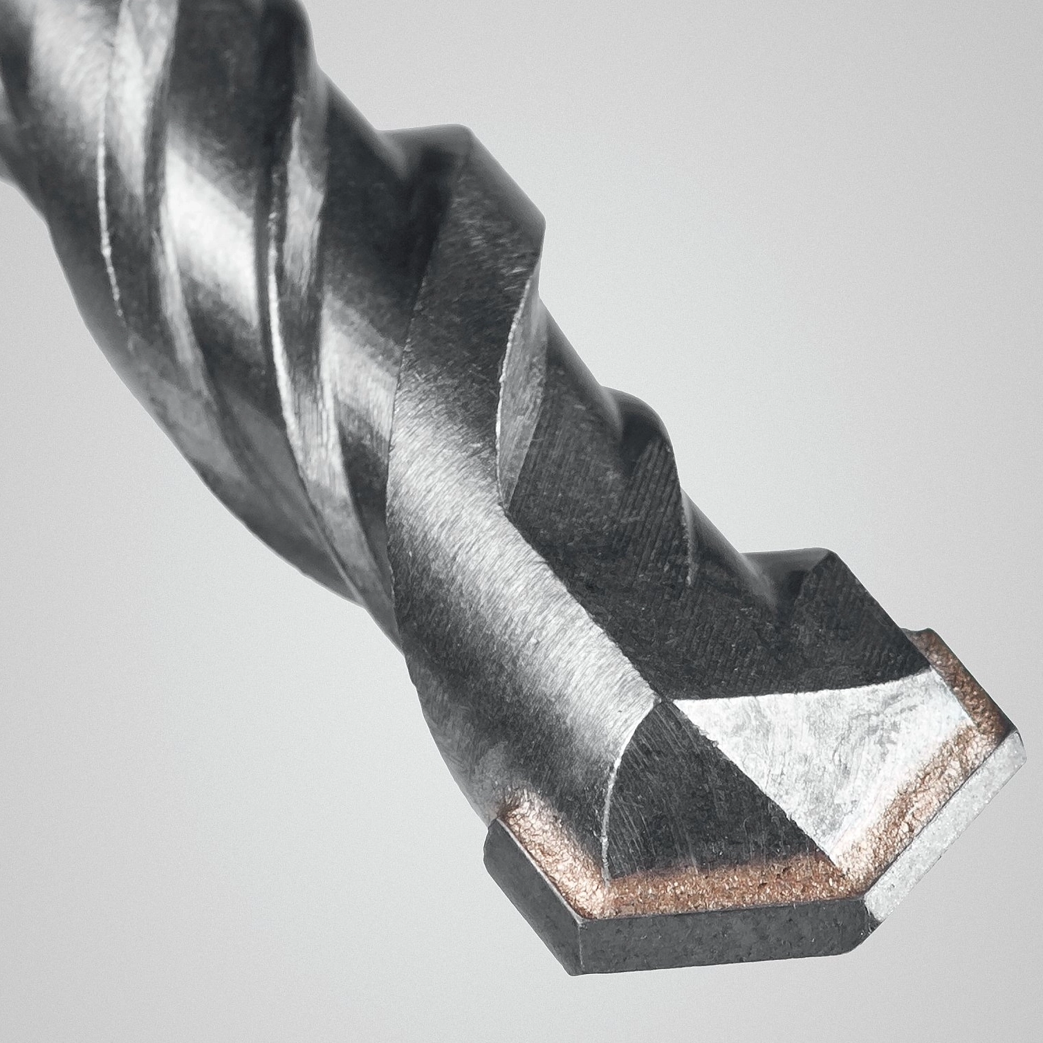 - Наконечник бура в форме зубила обеспечивает быстрое вхождение в материал и быстро отводит шлам в спираль.