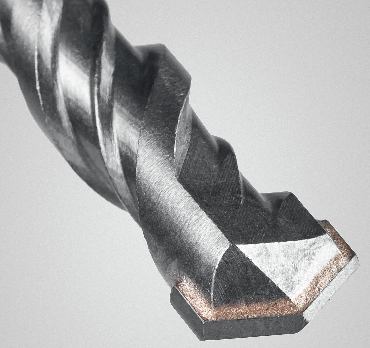 - Наконечник бура в форме зубила обеспечивает быстрое вхождение в материал и быстро отводит шлам в спираль.