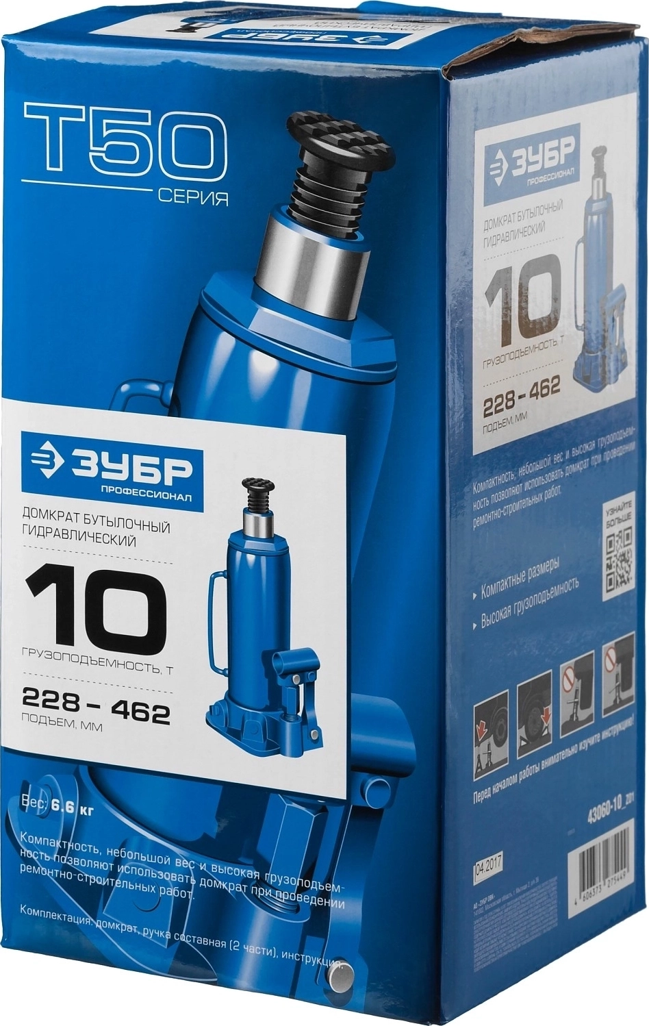 Бутылочный гидравлический домкрат ЗУБР 10 т 228 - 462 мм