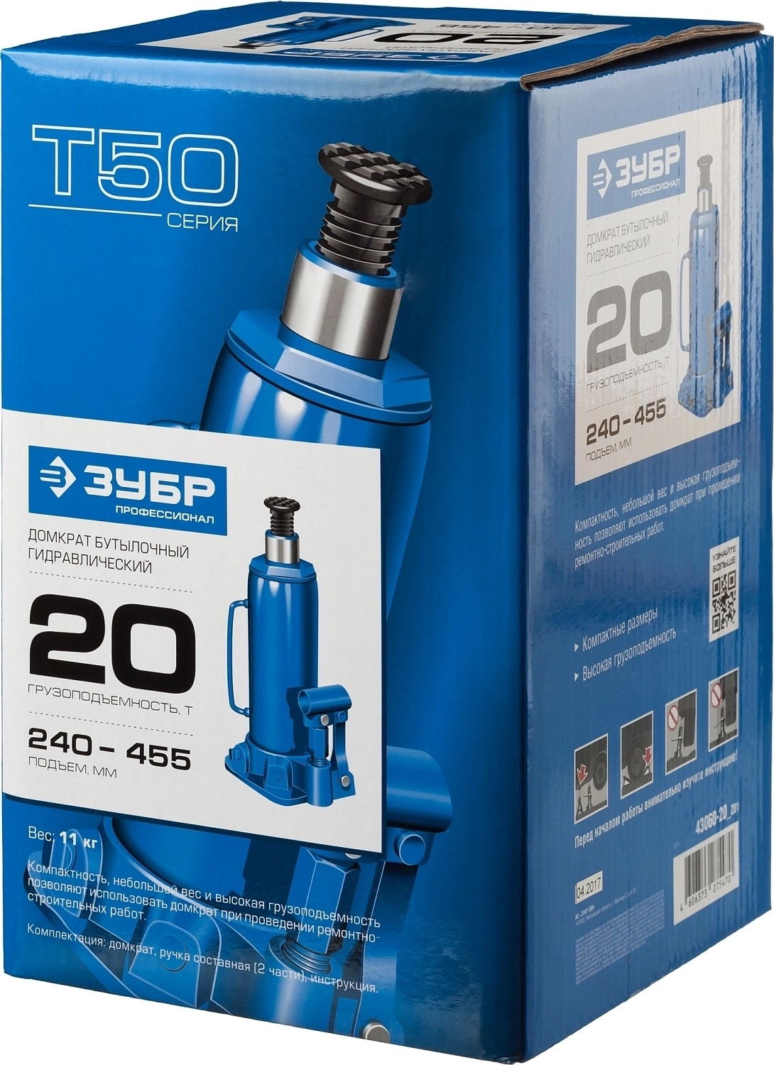Бутылочный гидравлический домкрат ЗУБР 20 т 240 - 455 мм