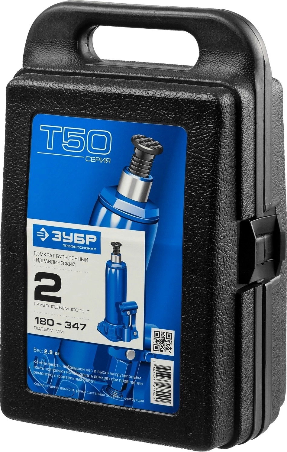 Бутылочный гидравлический домкрат в кейсе ЗУБР 2 т 180 - 347 мм