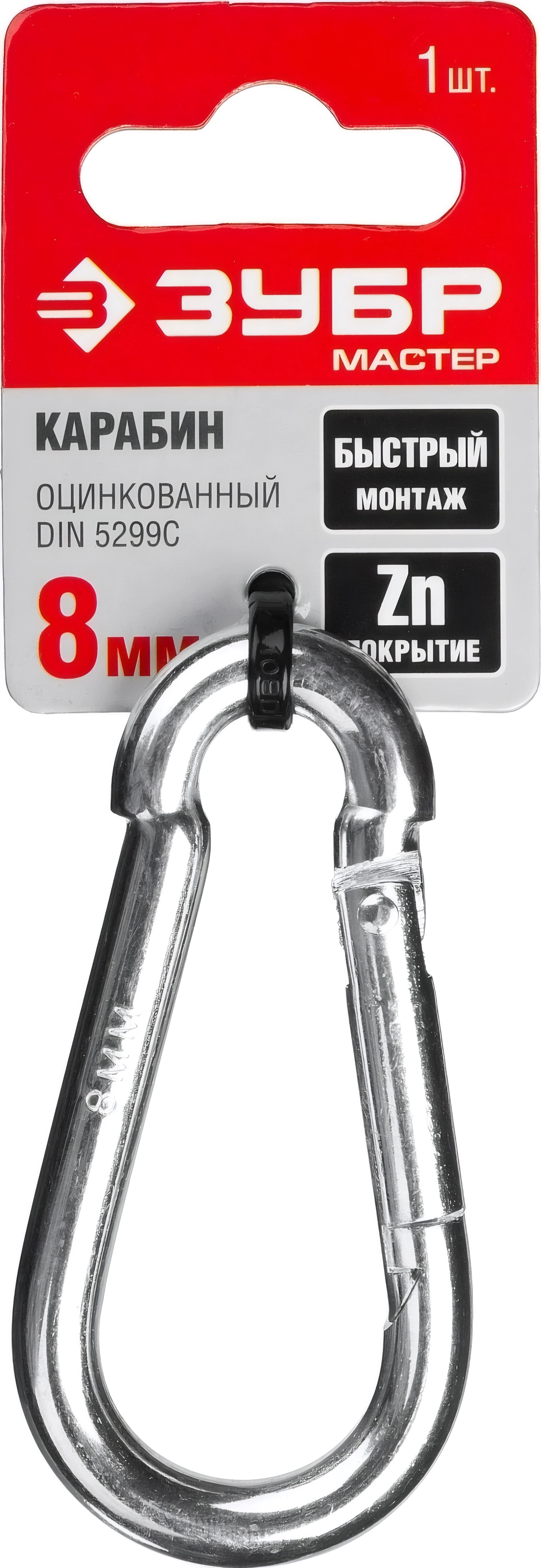Быстросъемный карабин ЗУБР DIN 5299C, 8 мм, 1 шт