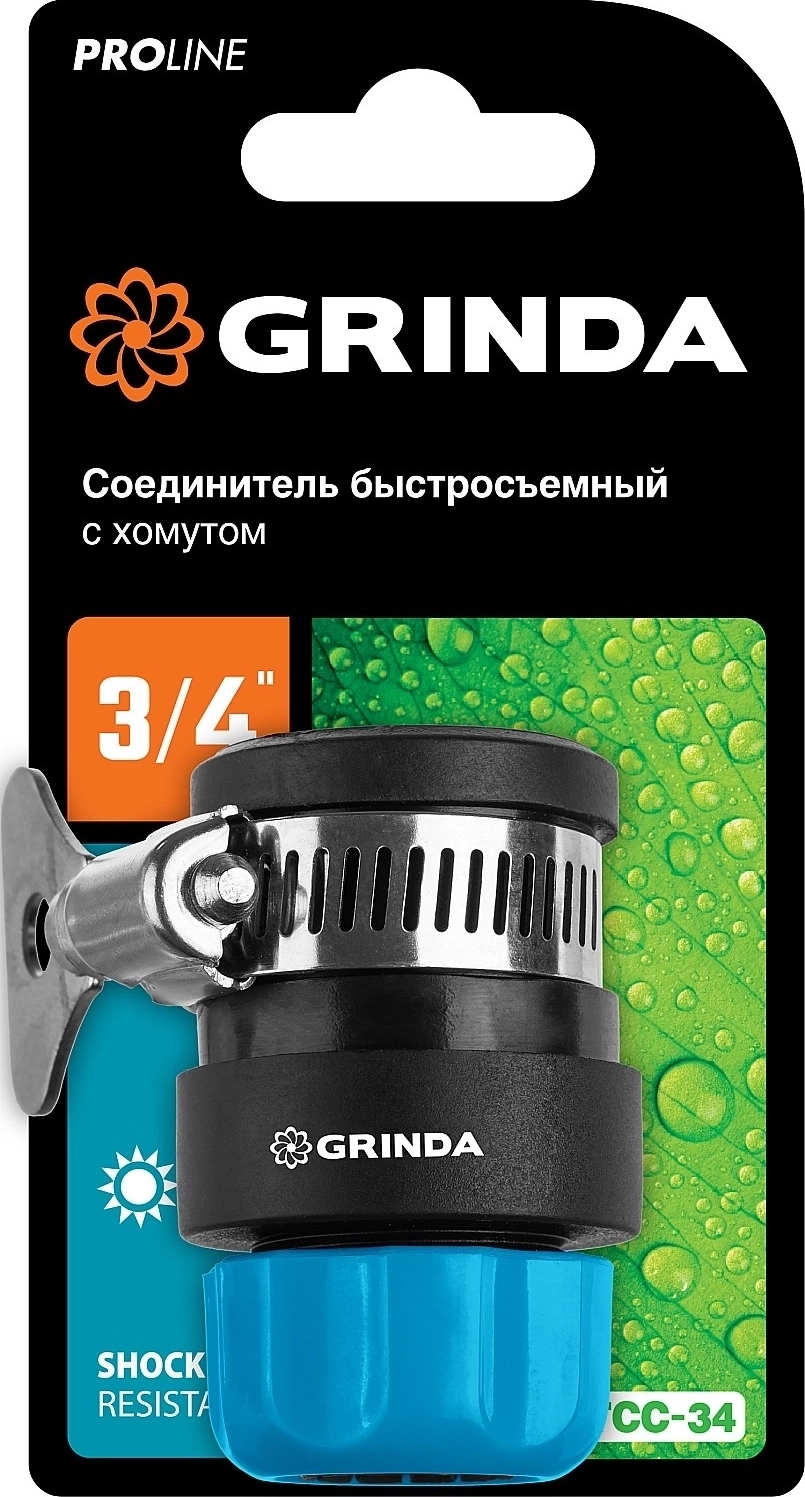 Быстросъемный соединитель PROLine GRINDA TCC-34 диаметр 3/4″ с металлическим хомутом для шланга