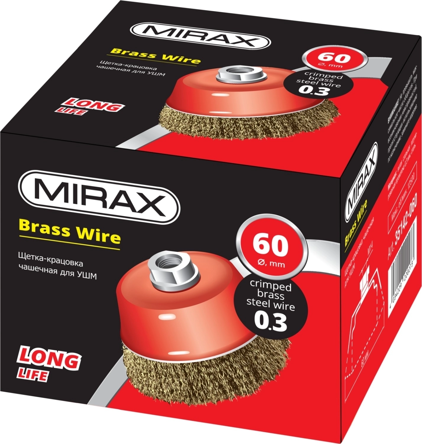 Чашечная щетка-крацовка для УШМ MIRAX 60 мм, витая стальная латунированная проволока 0.3 мм