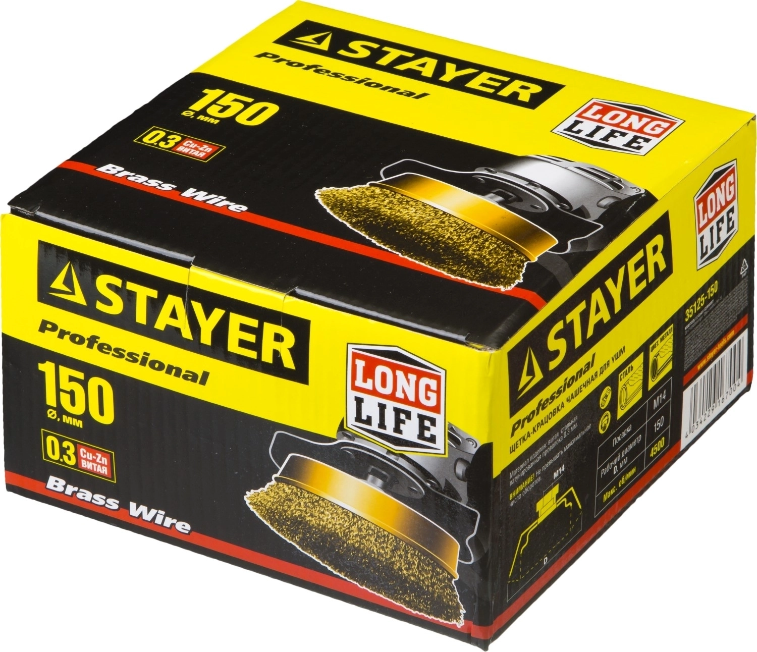 Чашечная щетка-крацовка для УШМ Professional STAYER 150 мм витая стальная латунированная проволока 0.3 мм