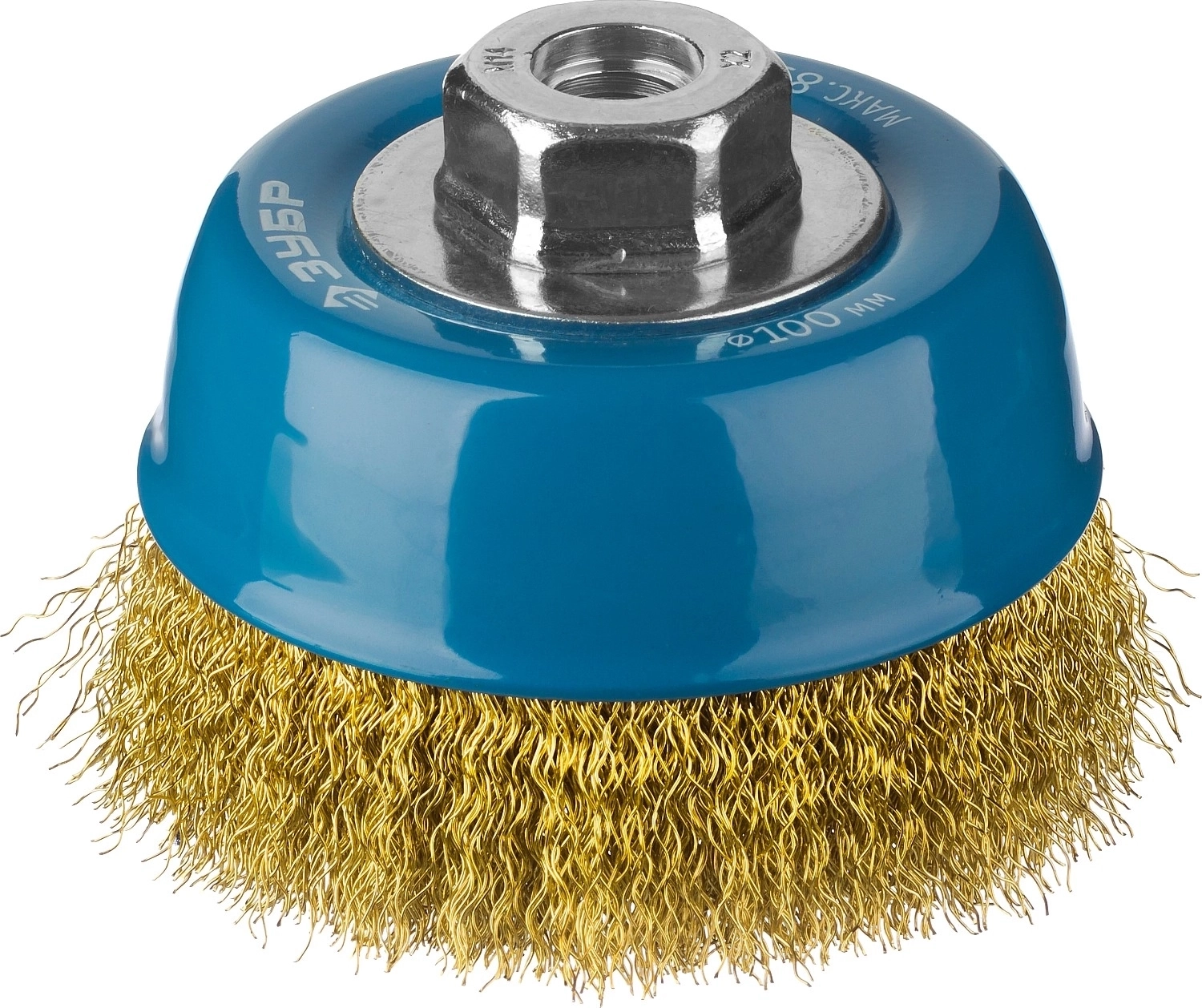 Чашечная щетка-крацовка для УШМ ЗУБР 100 мм витая стальная латунированная проволока 0.3 мм