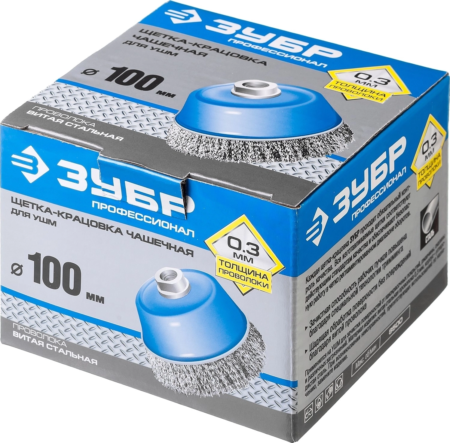 Чашечная щетка-крацовка для УШМ ЗУБР 100 мм витая стальная проволока 0.3 мм