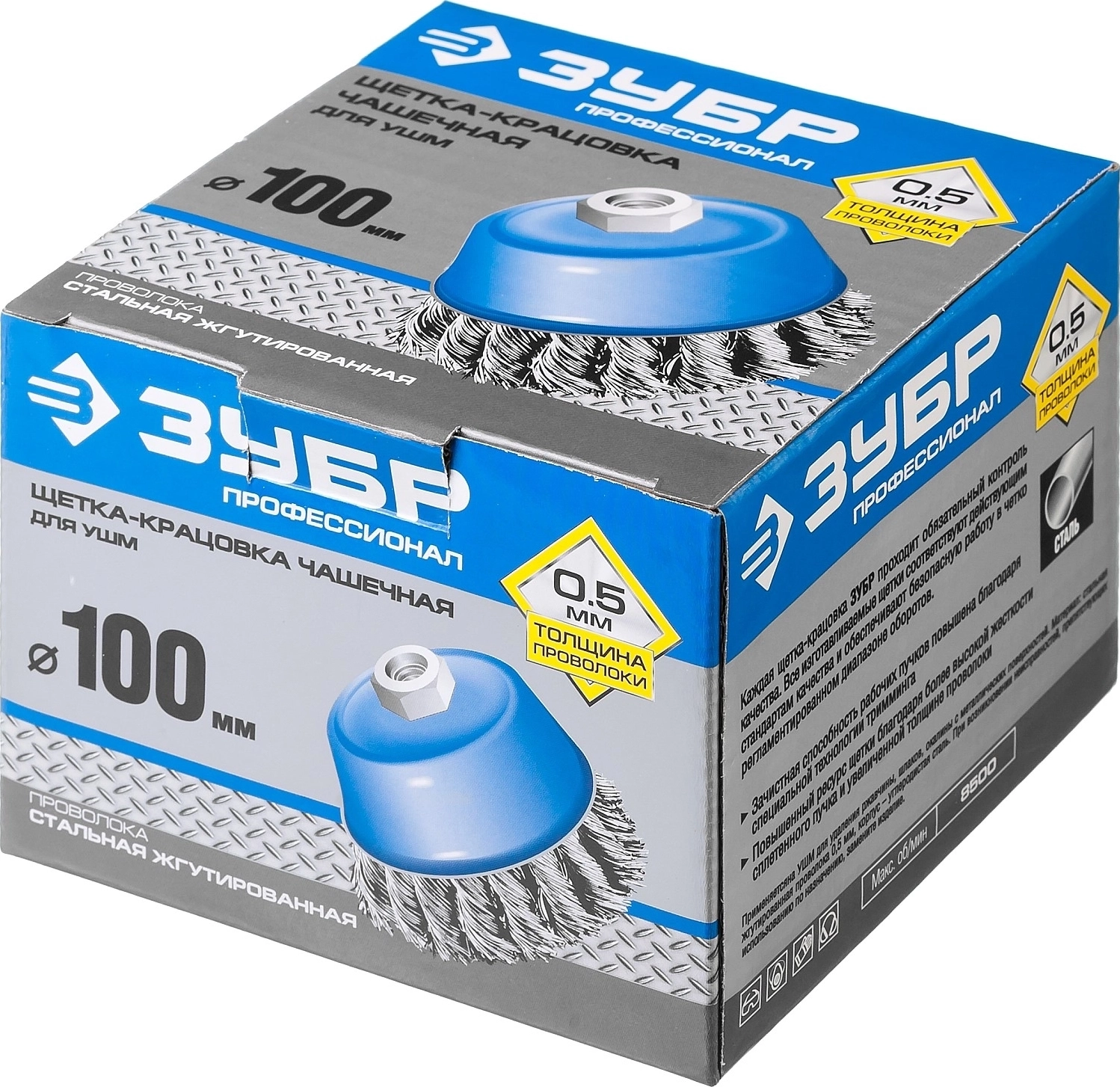 Каждая щетка-крацовка ЗУБР проходит обязательный контроль качества. Все изготавливаемые щетки соответствуют действующим стандартам качества и обеспечивают безопасную работу в четко регламентированном диапазоне оборотов.