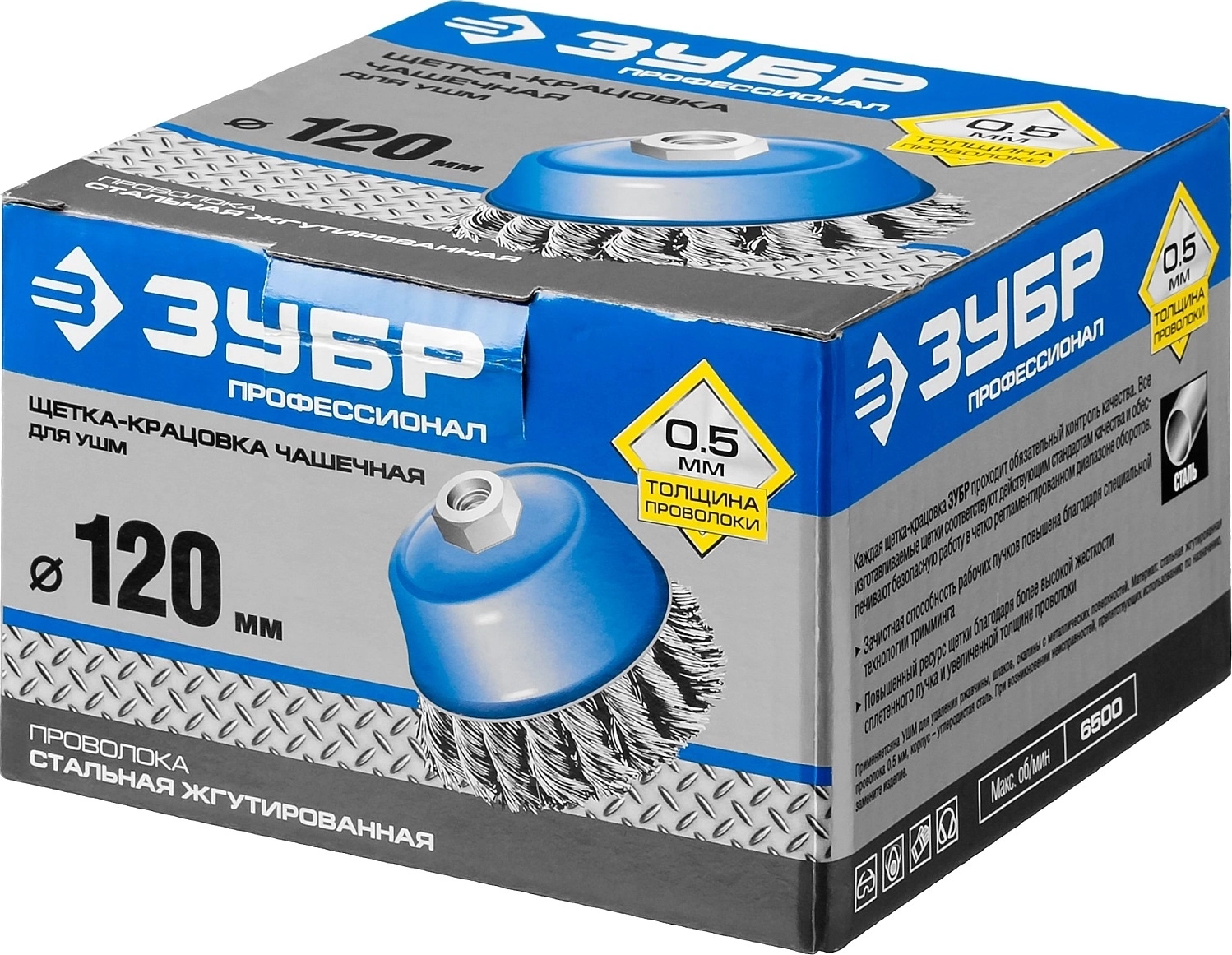Каждая щетка-крацовка ЗУБР проходит обязательный контроль качества. Все изготавливаемые щетки соответствуют действующим стандартам качества и обеспечивают безопасную работу в четко регламентированном диапазоне оборотов.