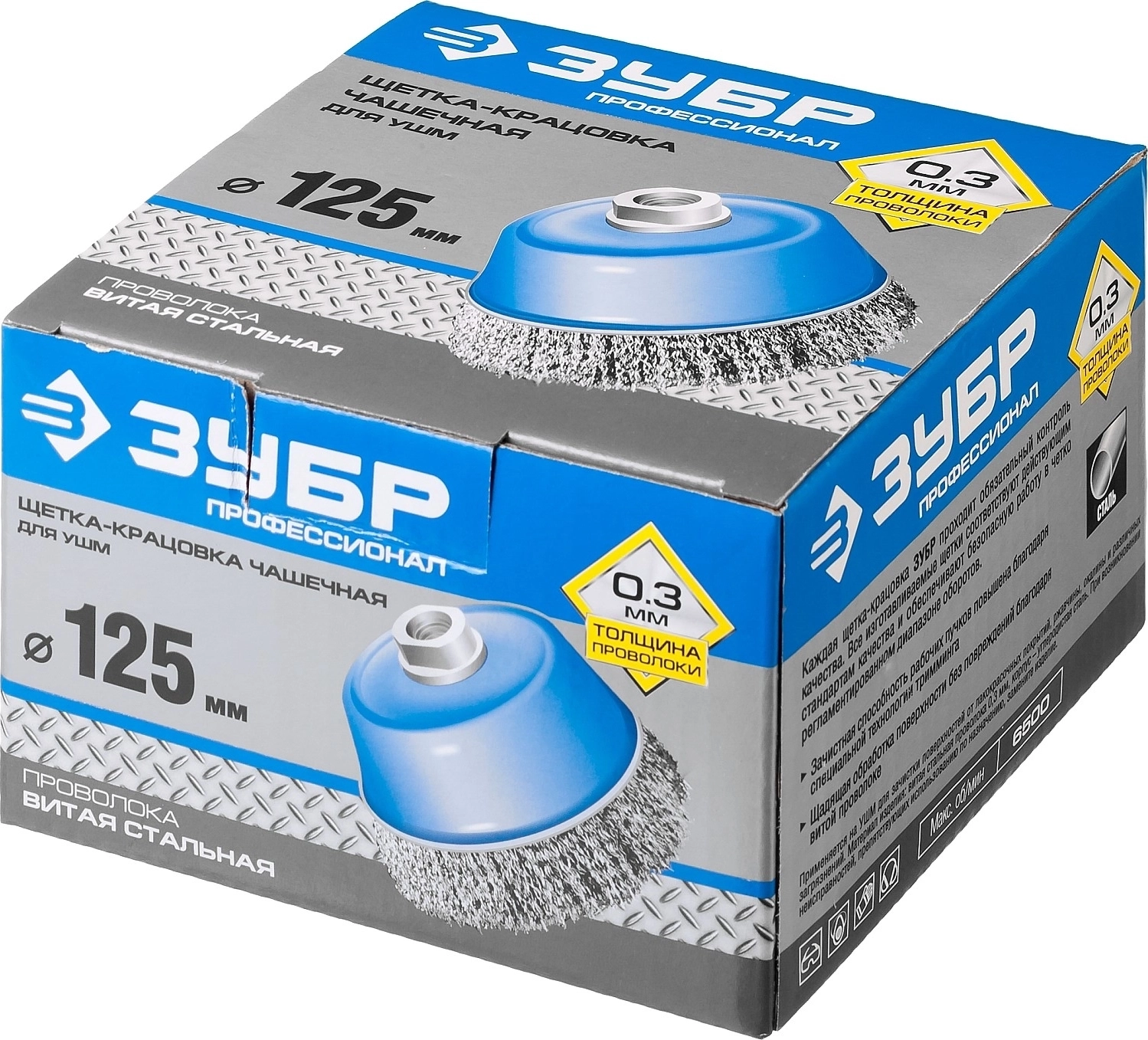 Чашечная щетка-крацовка для УШМ ЗУБР 125 мм витая стальная проволока 0.3 мм