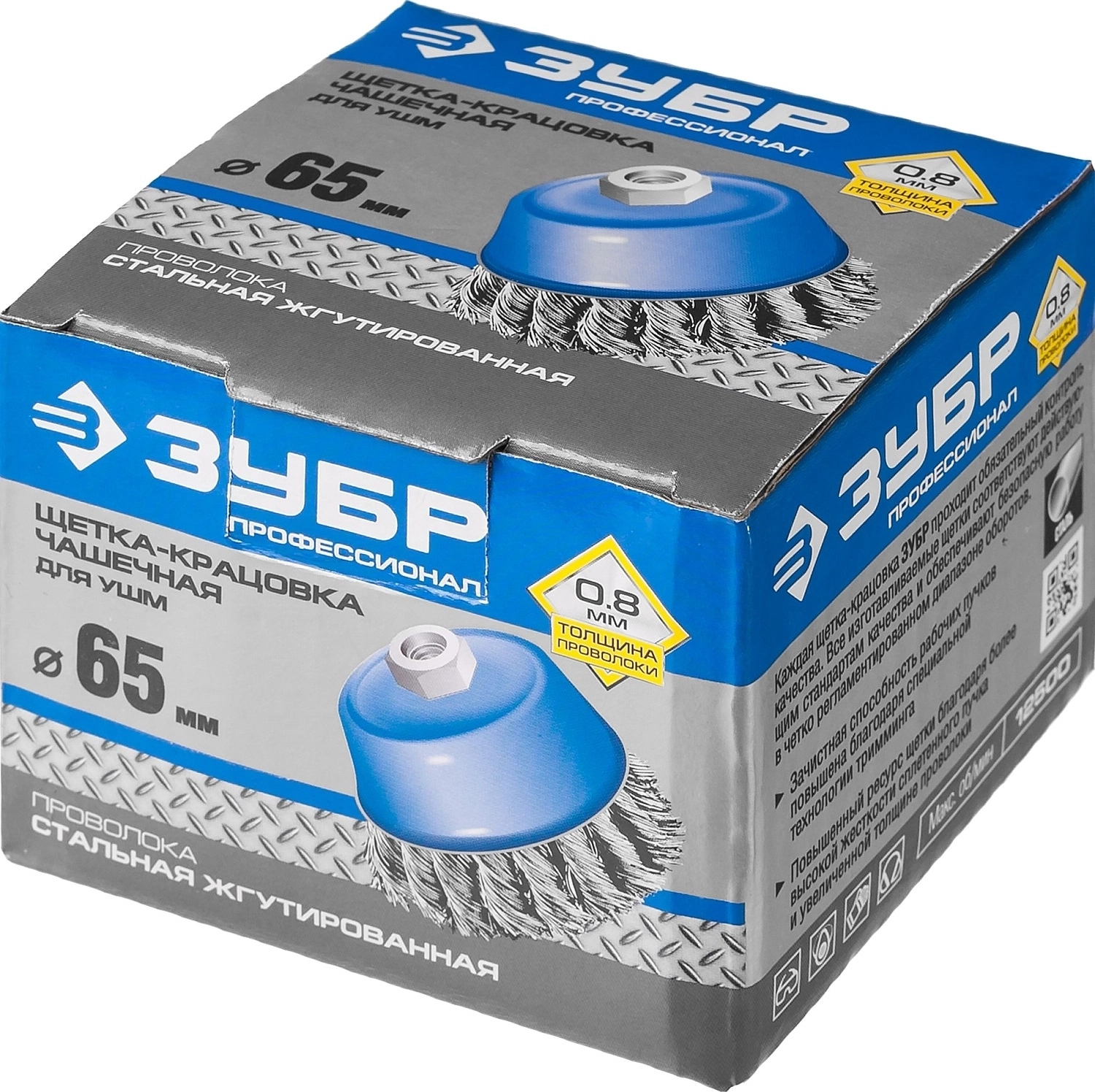Каждая щетка-крацовка ЗУБР проходит обязательный контроль качества. Все изготавливаемые щетки соответствуют действующим стандартам качества и обеспечивают безопасную работу в четко регламентированном диапазоне оборотов.