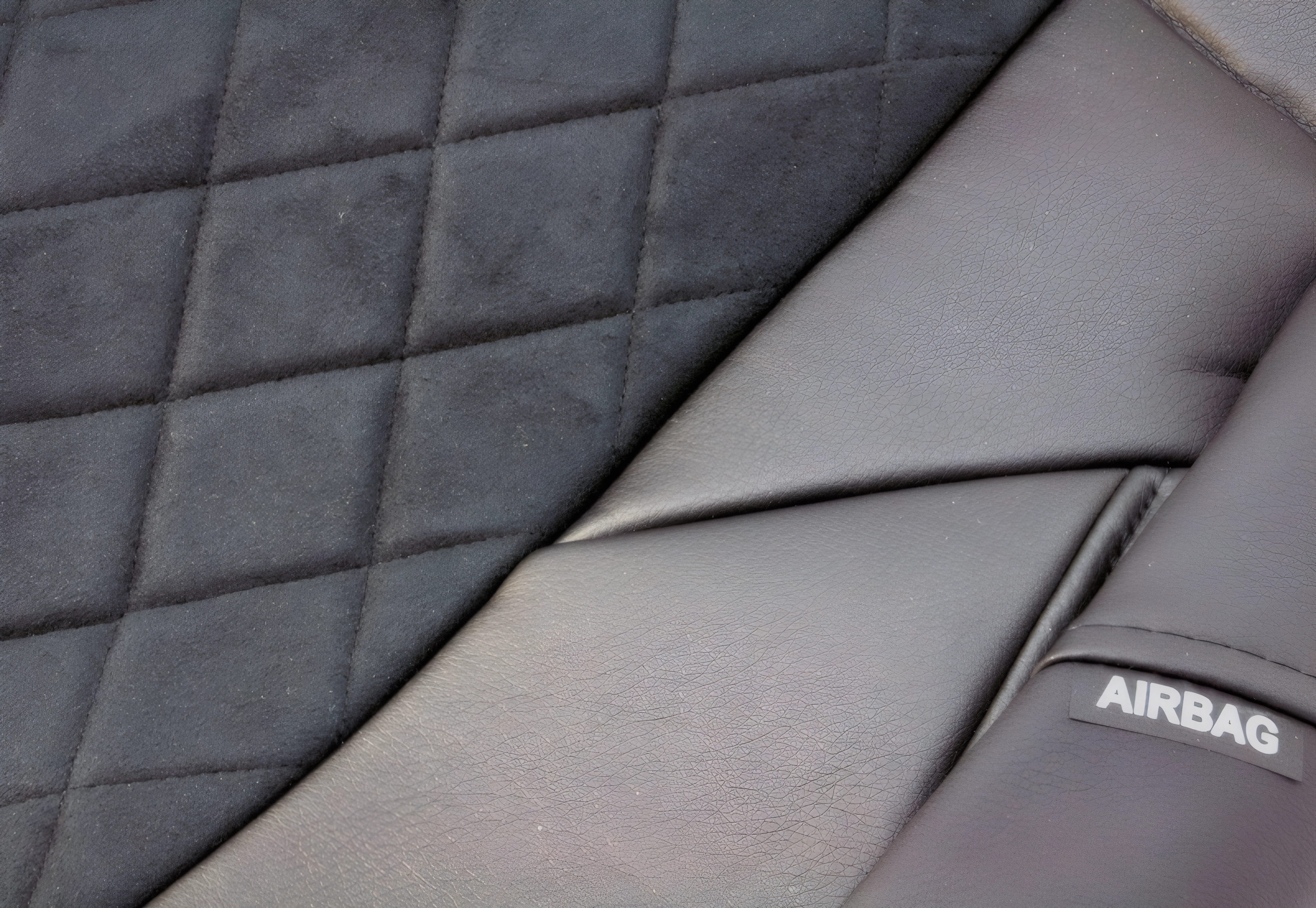 Экокожа – отличная альтернатива натуральному аналогу. Благодаря натуральной основе из хлопчатобумажной ткани экокожа отлично пропускает воздух, а слой полимерного покрытия делает ее более прочной. Текстуру и рисунок поверхности экокожа получает благодаря обработке давлением. Чтобы не стоять перед выбором, что лучше, алькантара или экокожа, следует выбрать их сочетание, когда боковые части выполняются из экокожи, а центральные вставки – из алькантары.