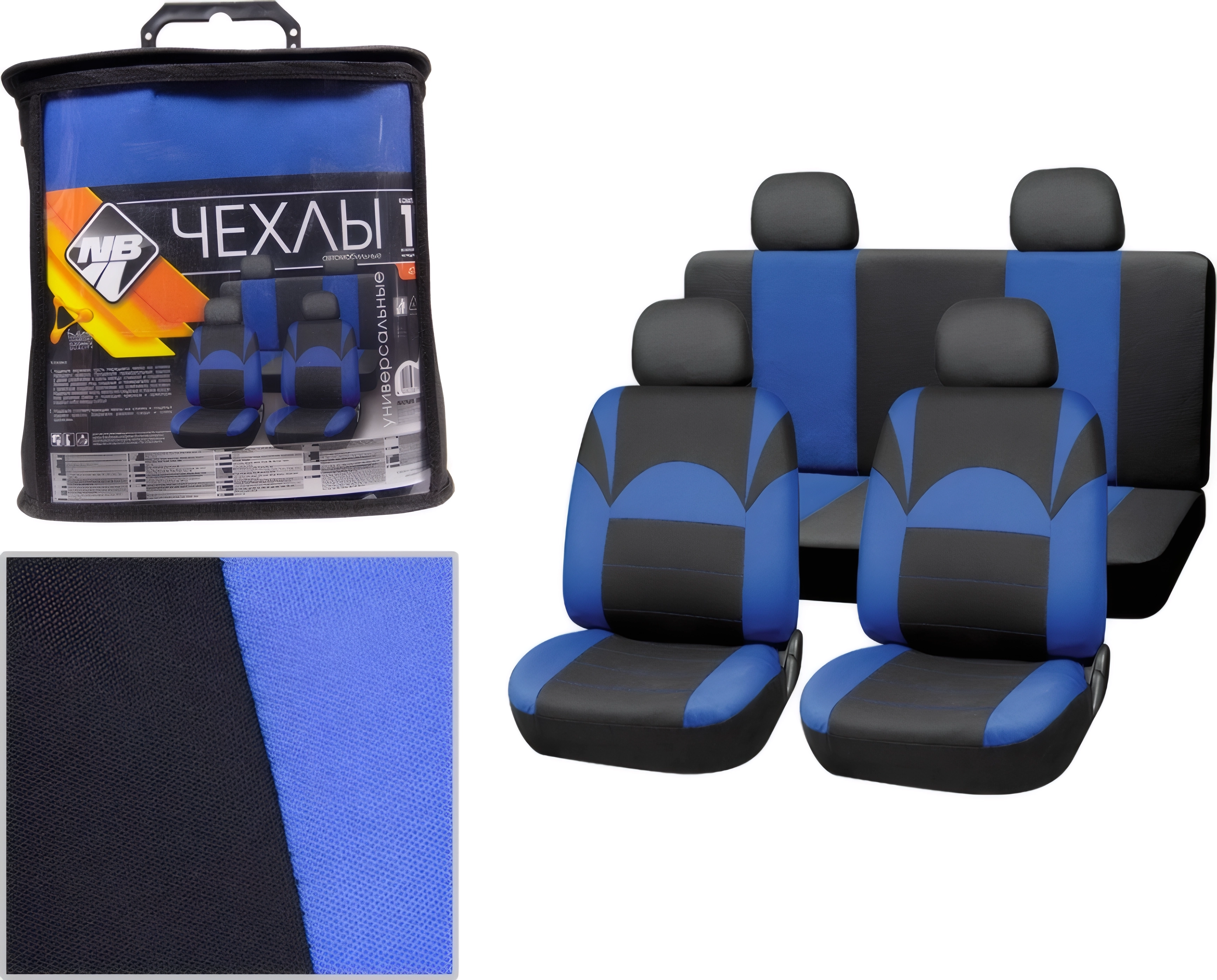 Чехлы на сиденья универсальные Nova Bright 47404 черные с синими вставками