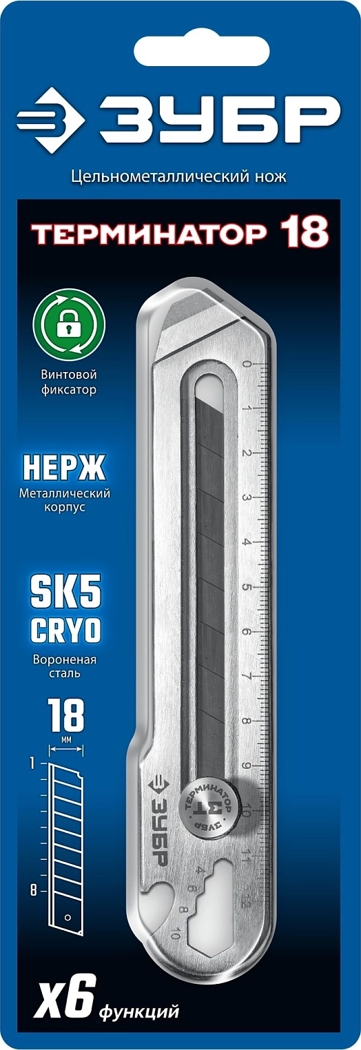 Цельнометаллический нож с винтовым фиксатором ЗУБР Терминатор-18, 18 мм