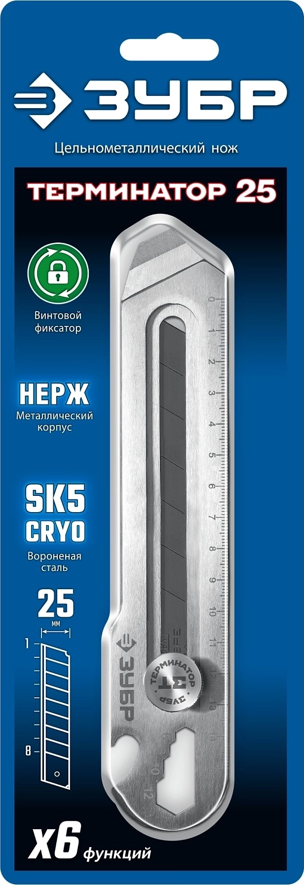 Цельнометаллический нож с винтовым фиксатором ЗУБР Терминатор-25, 25 мм