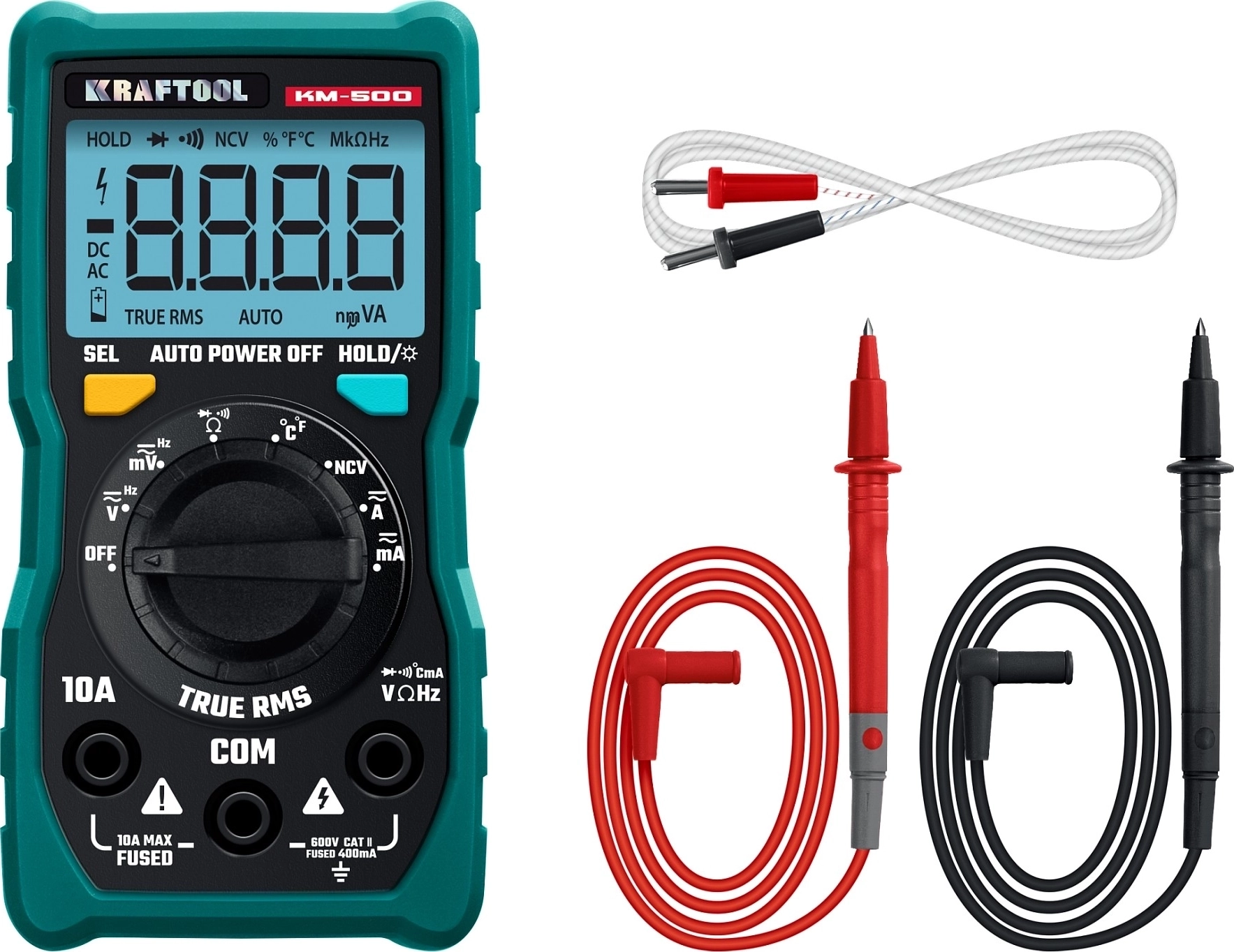 Портативный автоматический цифровой мультиметр KRAFTOOL гарантирует высокую точность измерений. Применение высококачественных материалов обеспечивает длительный срок службы. Прибор имеет функции измерения переменного и постоянного напряжения, сопротивления, емкости, проверки целостности цепей со звуковым сигналом, проверки диодов, измерения переменного и постоянного тока, измерение частоты до 3МГц и измерение температуры.