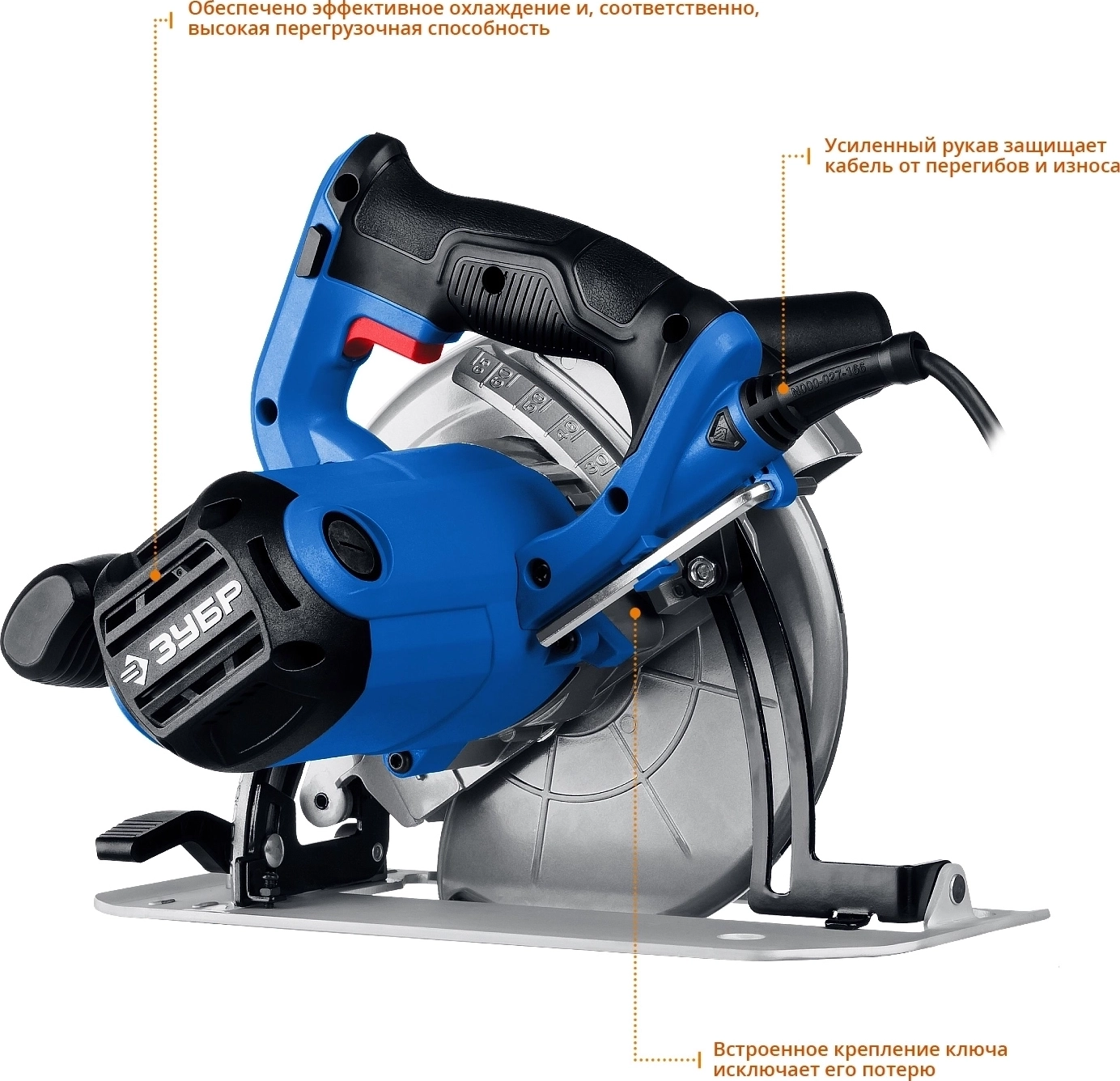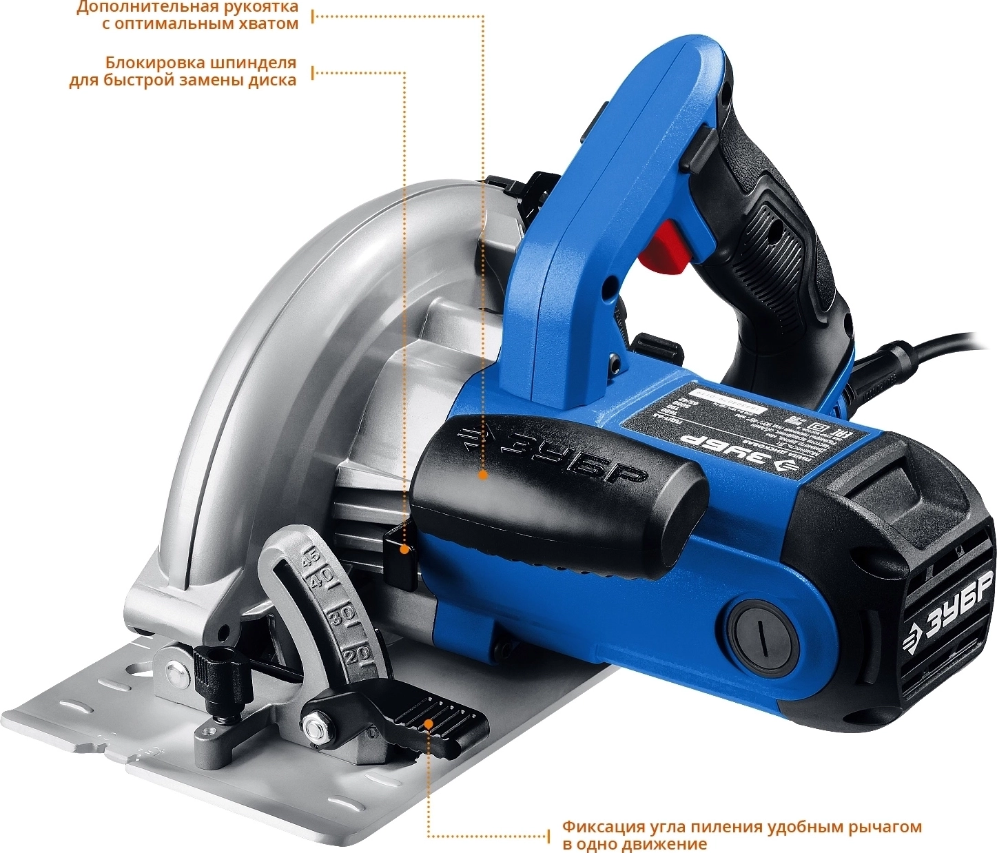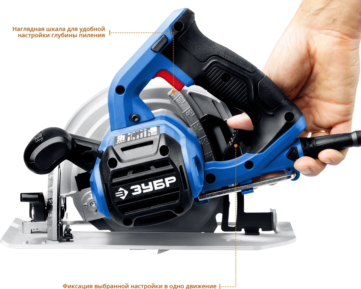 - Бесступенчатая регулировка глубины и угла пиления с удобными шкалами для точных работ