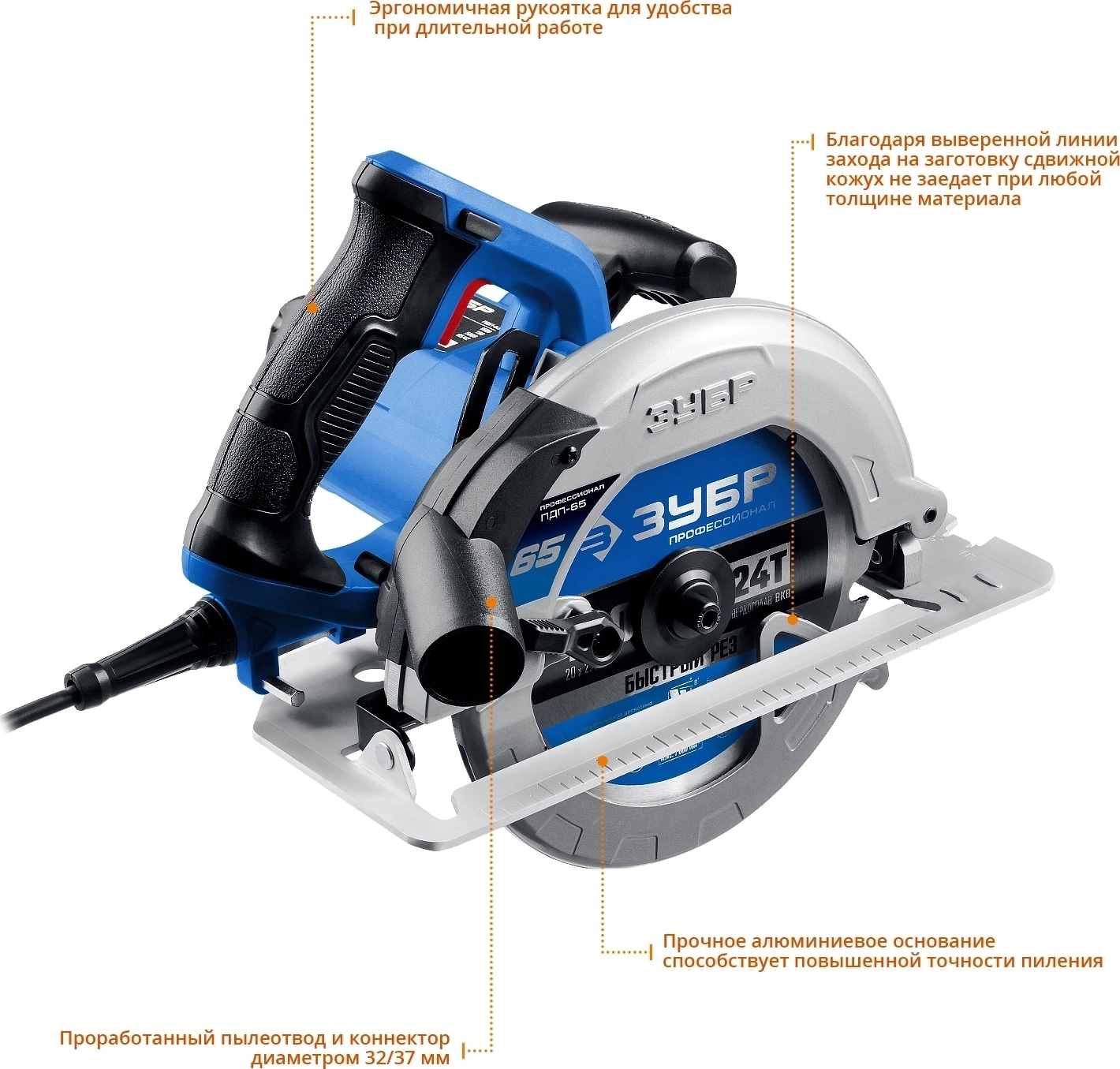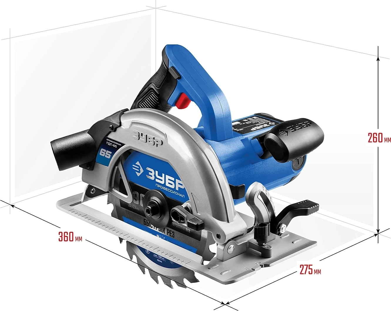 Циркулярная пила для всех видов распиловочных работ в серии профессионального инструмента ЗУБР. Максимальная глубина пиления 65 мм позволяет пилить все виды фанеры, любые листовые материалы, а также большинство типоразмеров досок. Жесткость конструкции обеспечивает точность пиления, а удобные рычаги фиксации выбранных настроек и оптимальная эргономика рукояток помогают работать быстрее и комфортнее