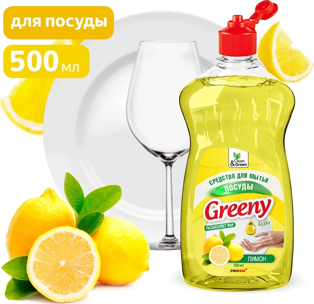 Cредство для мытья посуды Clean&Green Greeny CG8069 500мл - свежий аромат лимона