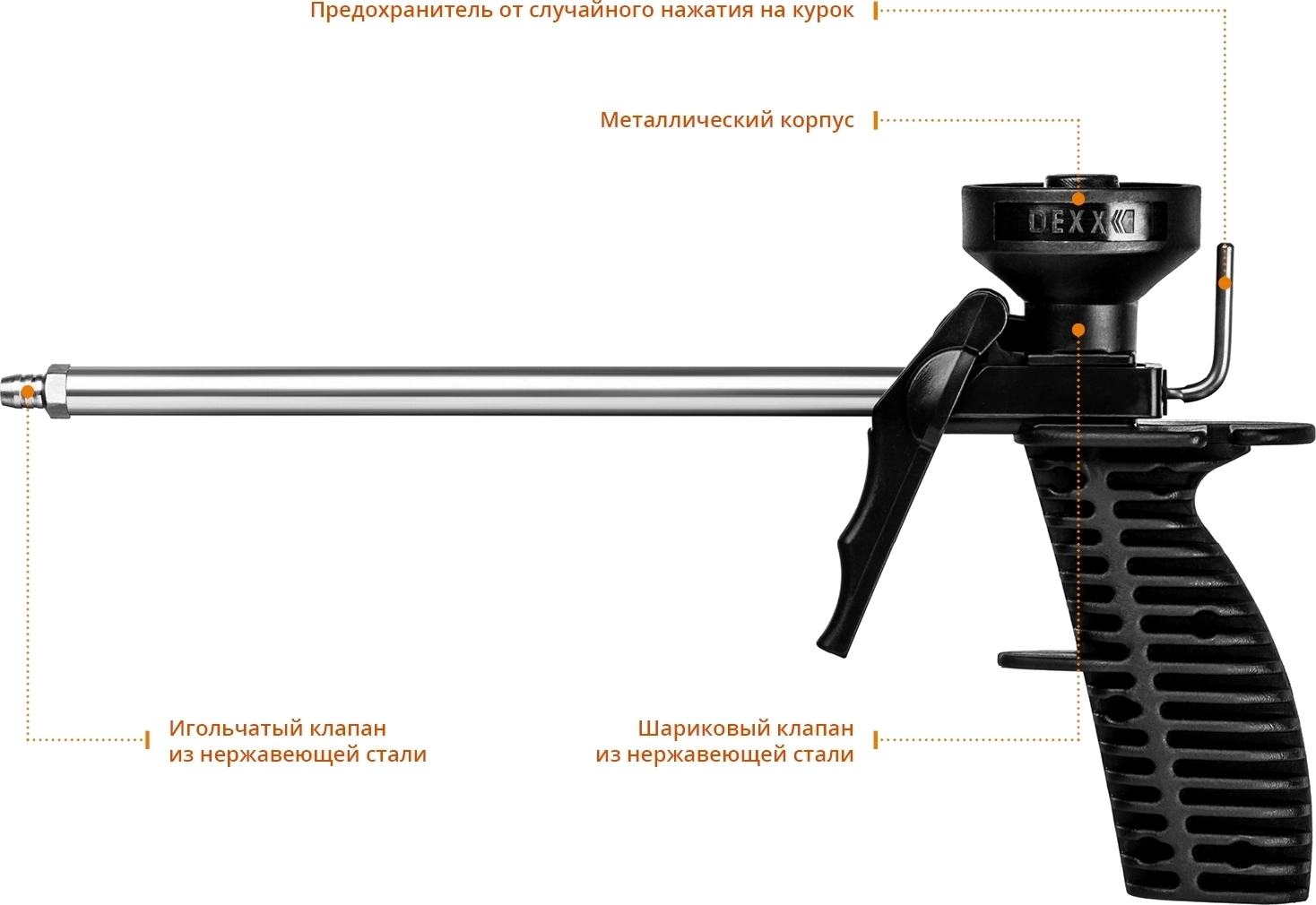 Пластиковый пистолет для монтажной пены DEXX Mix