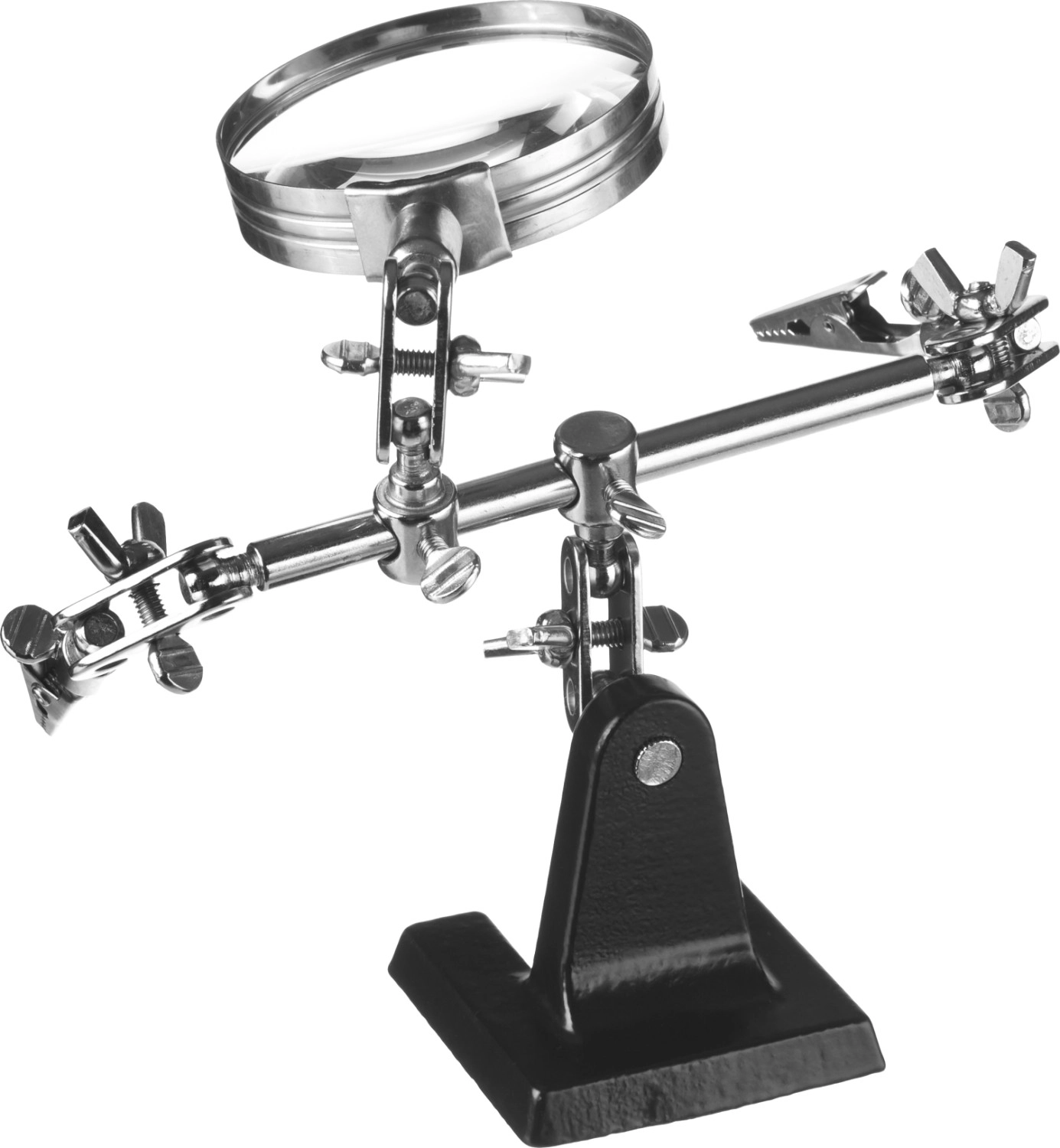 Штатив освобождает руки и позволяет легко осуществлять паяльные работы на электронной плате при помощи зажимов для крепления и поворотного механизма и качественной линзы. Необходимой при пайке элементов малого размера.