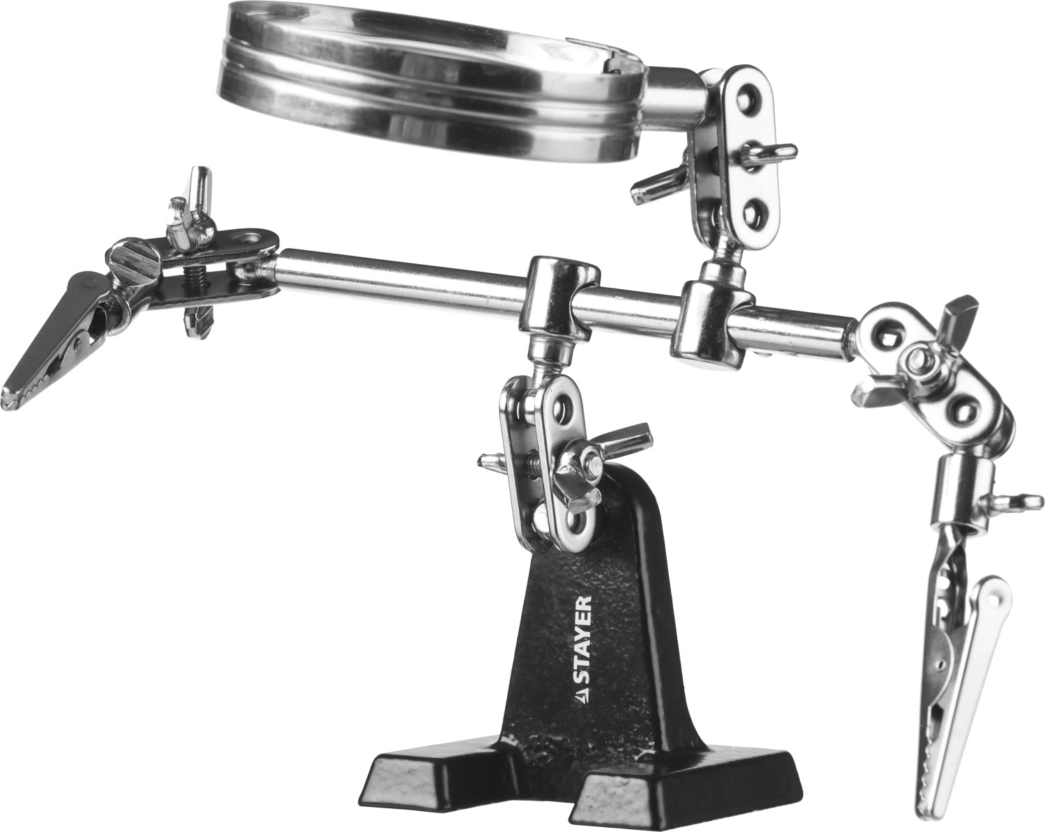 Держатель для пайки третья рука с лупой STAYER MAXTerm, увел. линза 2Х