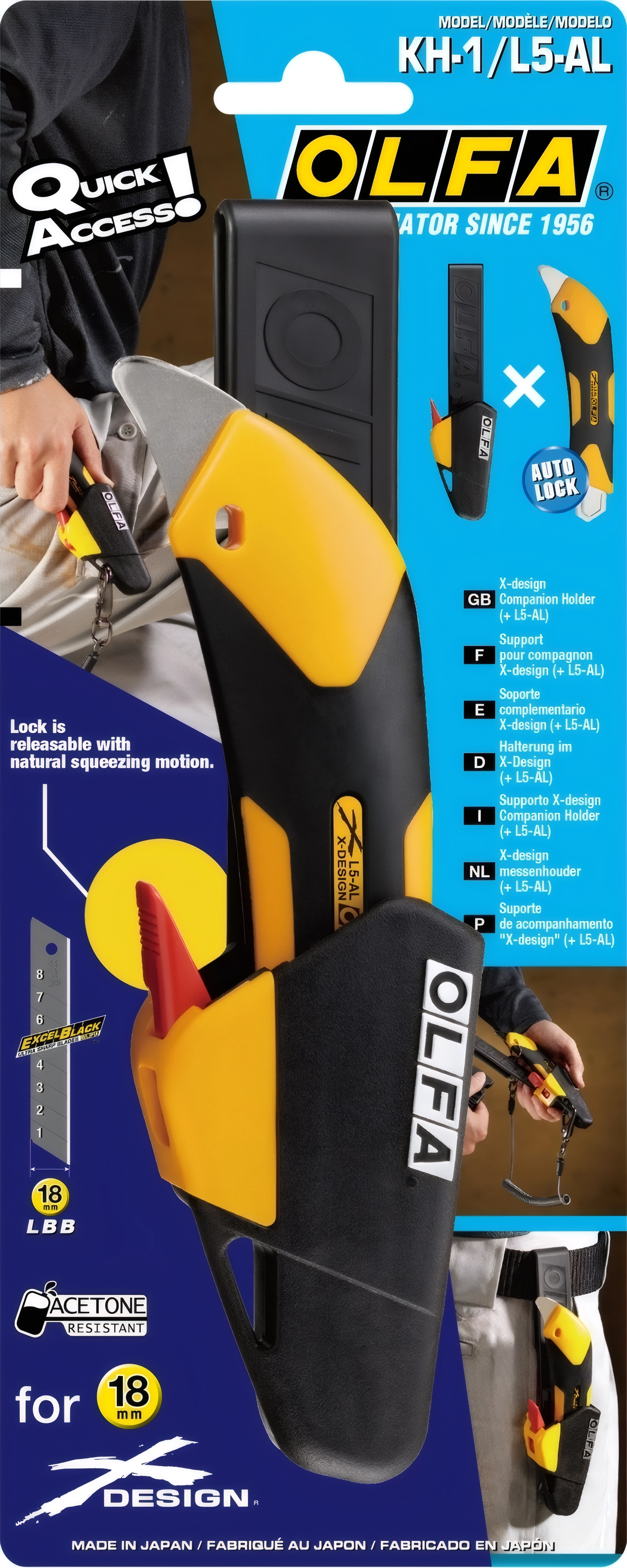 Универсальный держатель в комплекте с ножом OLFA L5-AL серии X-design ComfortGrip, с храповым механизмом и металлическим выступом. Легкий и простой в использовании оснащен эргономичной противоскользящей рукояткой устойчивой к кислотам, ацетону и маслам, усиленной фиберглассом. Эта комбинация обеспечивает удобный, надежный захват при выполнении самых сложных работ. Поставляется с черным лезвием LBB шириной 18 мм, которое на 25% острее стандартных лезвий OLFA. Просто отломите один из восьми сегментов, если лезвие затупилось. Полная замена происходит быстро и без дополнительных инструментов. Многоцелевой металлический выступ делает нож еще более практичным и удобным. Используйте выступ для любых задач, где нельзя использовать лезвие: для удаления герметика, открывания банок или снятия выпускных пластин. Это полезное дополнение гарантирует, что острые как бритва лезвия OLFA останутся чистыми и невредимыми.