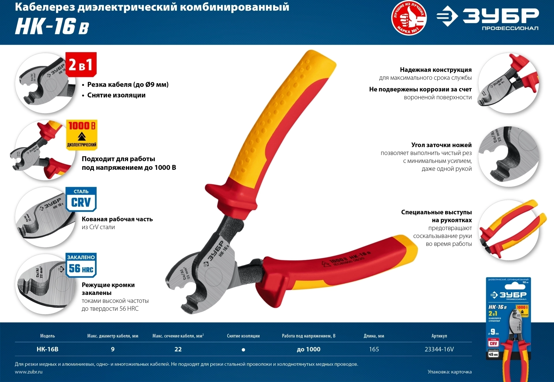 Диэлектрический кабелерез ЗУБР НК-16В d 9 мм 165 мм 1000 В
