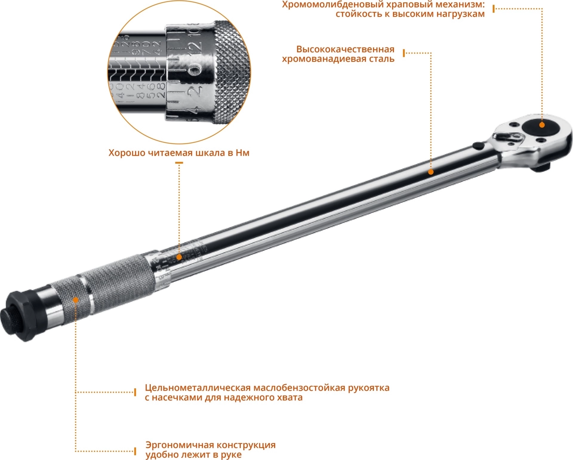 Ключ динамометрический позволяет с высокой точностью определять усилие затяжки крепежа. Благодаря широкому диапазону измерений может применяться в различных областях машиностроения и промышленности
