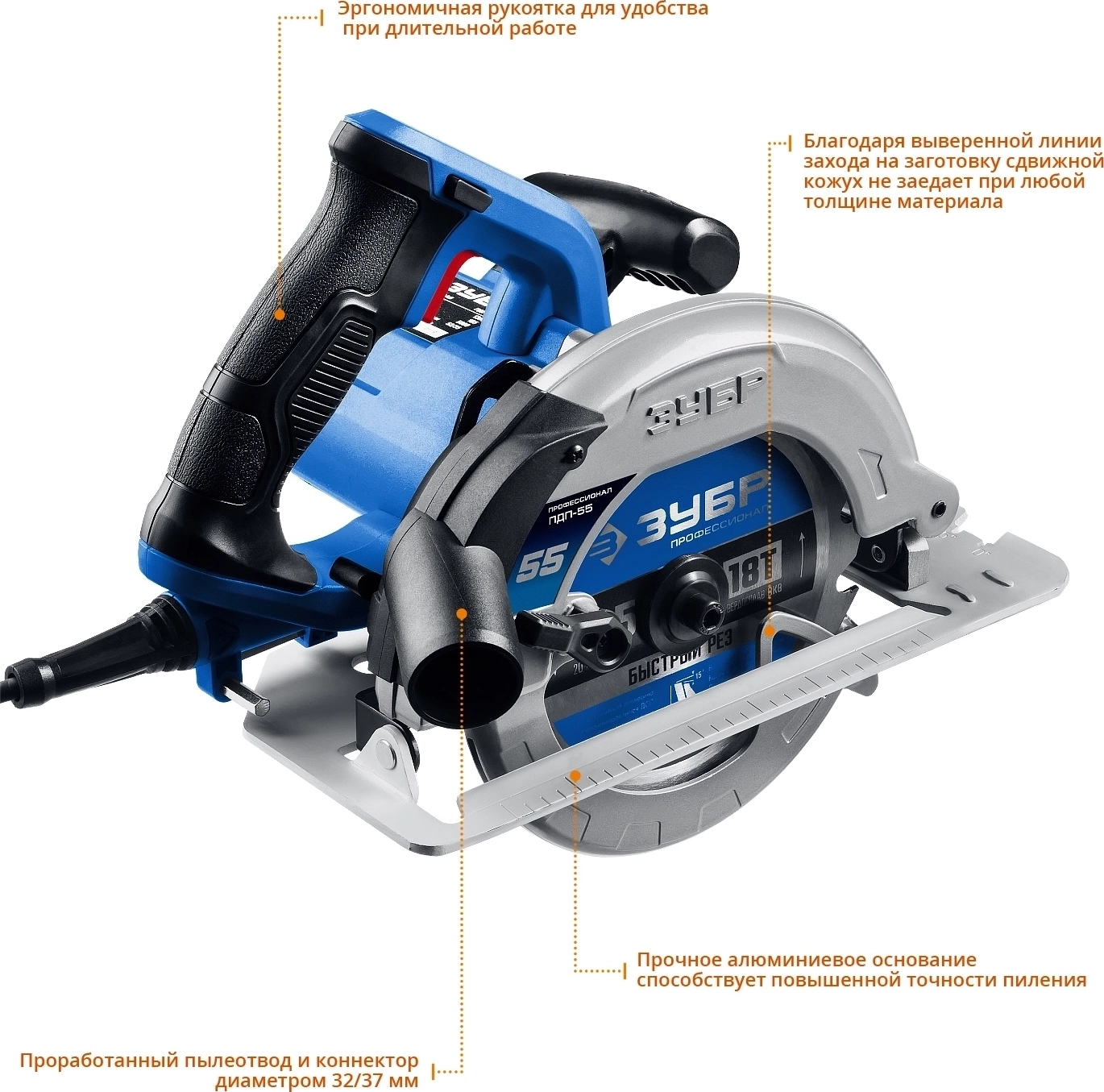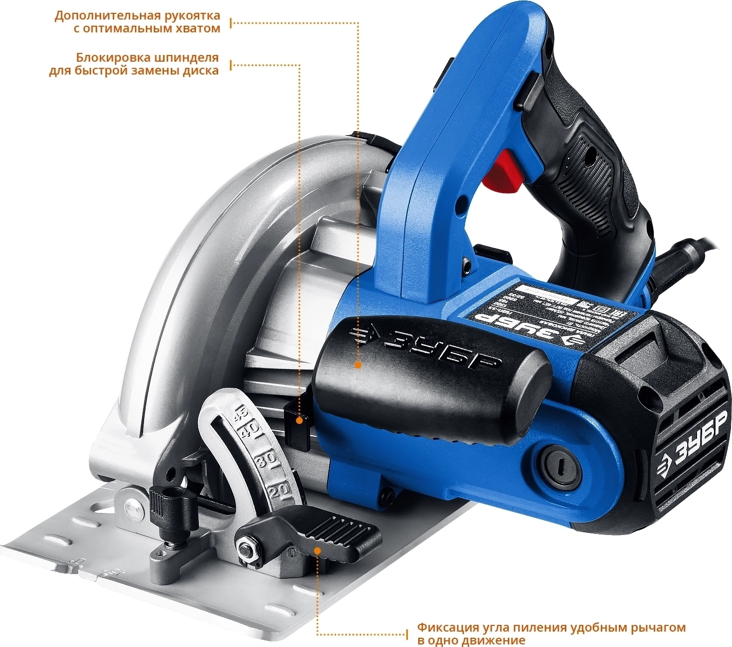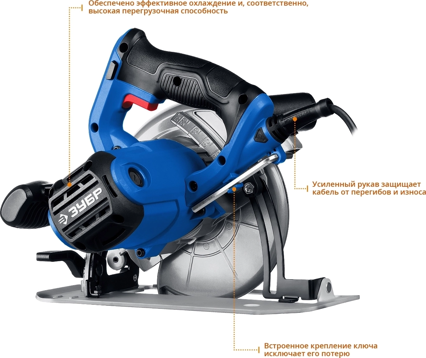 - Бесступенчатая регулировка глубины и угла пиления с удобными шкалами для точных работ