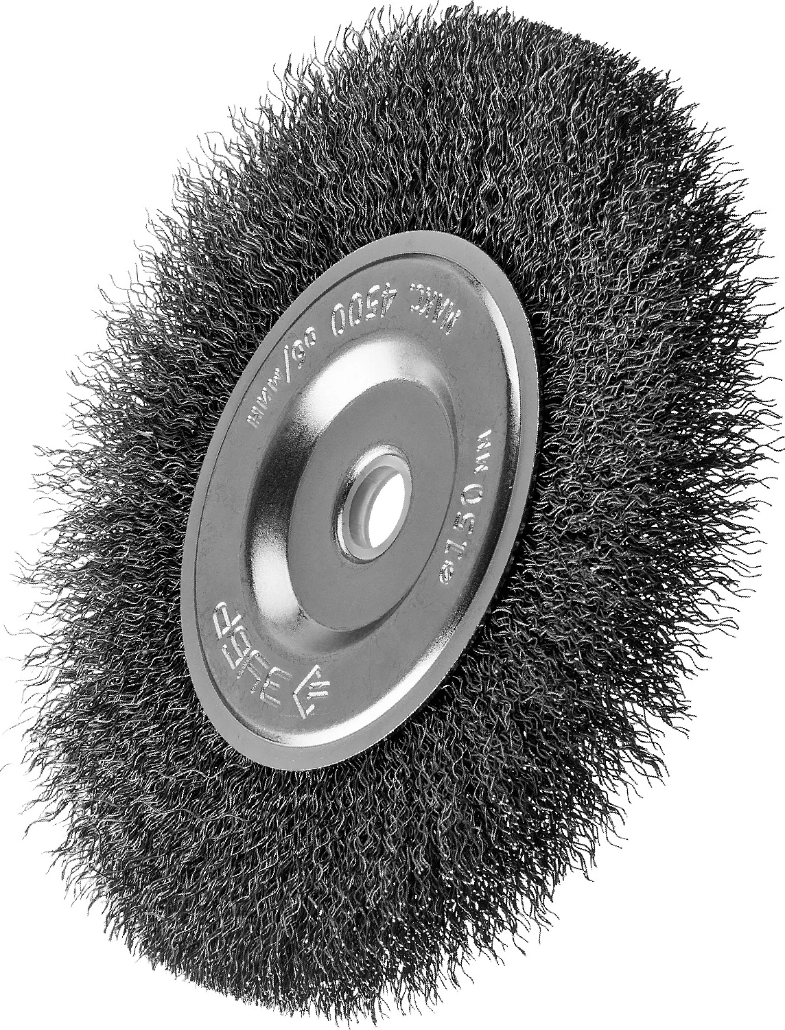 Дисковая щетка-крацовка ЗУБР 150 х 12.7 мм витая стальная проволока 0.3 мм для точильно-шлифовального станка