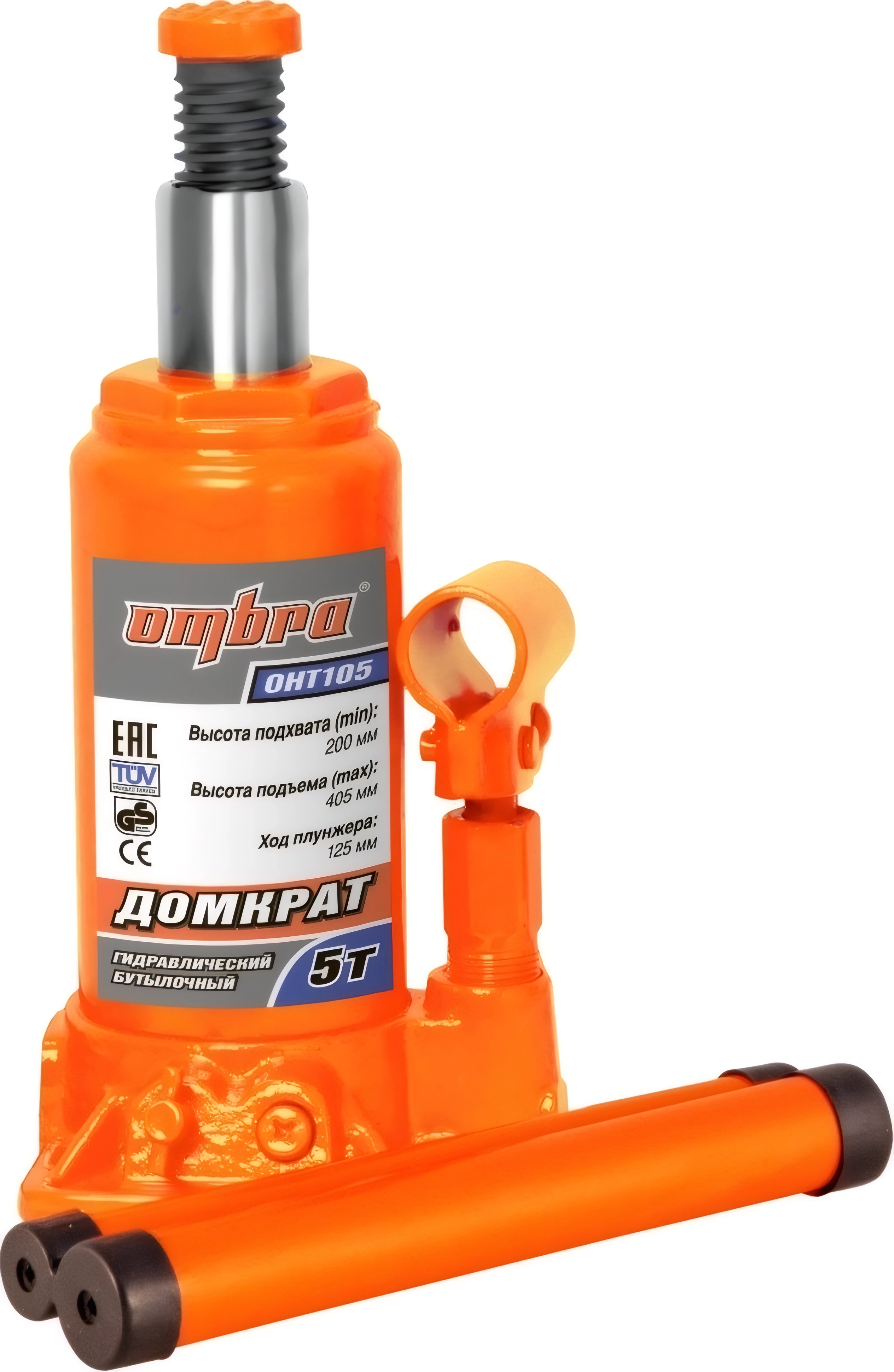 Домкрат гидравлический Ombra OHT105 (55411) - грузоподъемность - 5 т., регулируемая высота подхвата (200-280 мм), высота подъема - 405 мм, клапан перегрузки