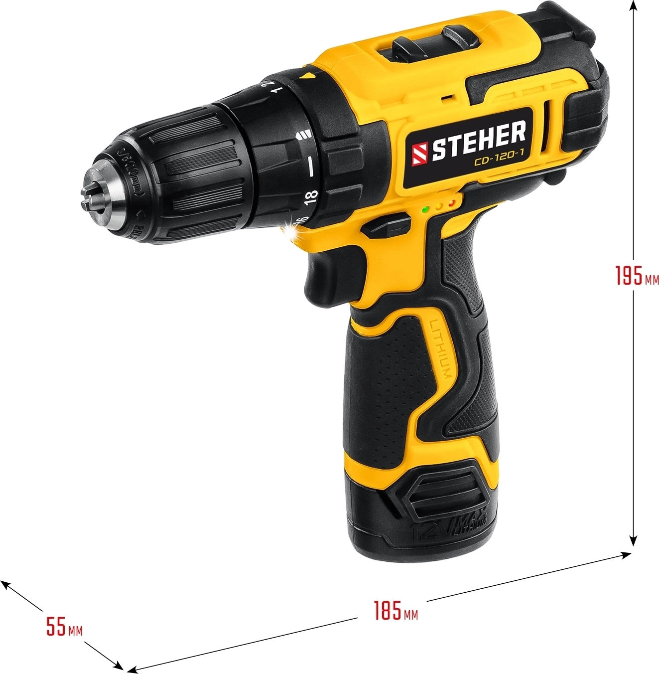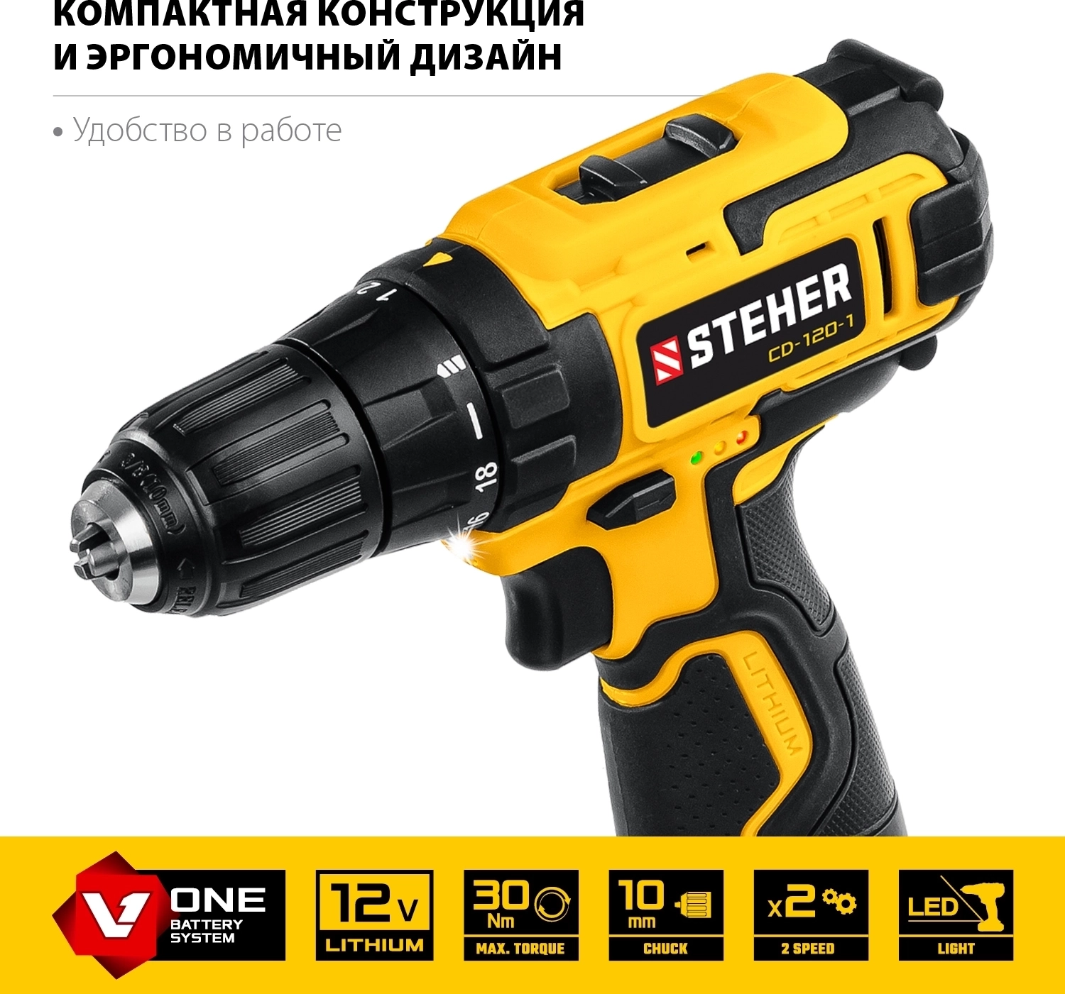 Дрель-шуруповерт STEHER 12 В 30 Н·м 1 АКБ 2 А·ч